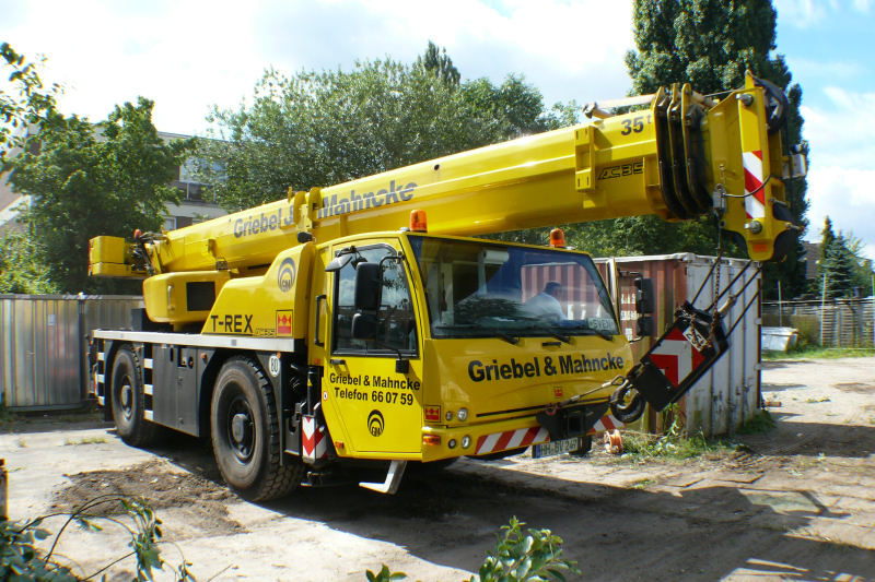 Sven positionierte seinen wendigen 35 Tonner direkt neben dem Container