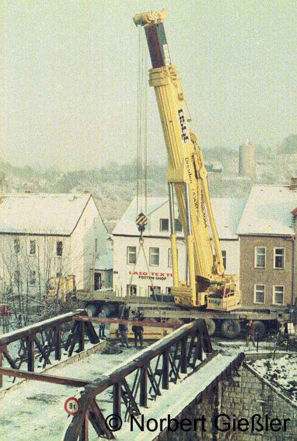 Strassenbrücke ausgehoben werden. Der zunächst eingesetzte LTM 1400 von Eisele erwies sich