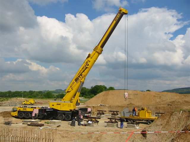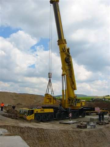 Terex-Demag AC 500/1 Autoklug montiert Brückenbinder