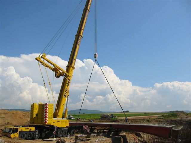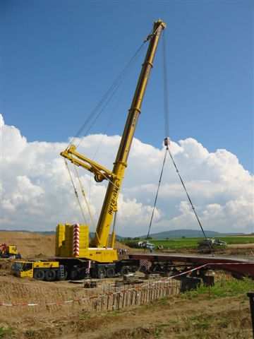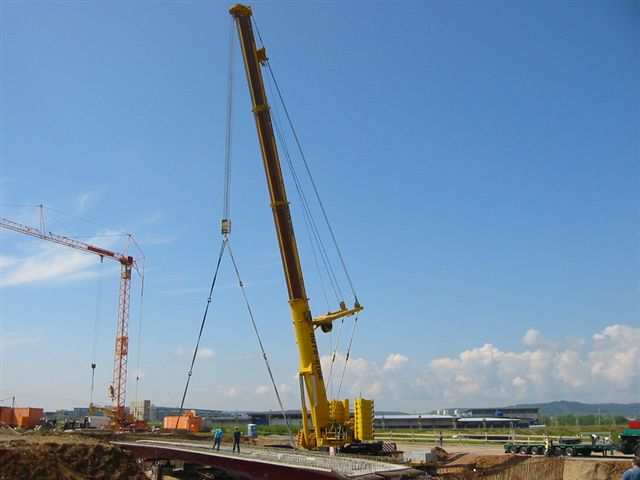 Terex-Demag AC 500/1 Autoklug montiert Brückenbinder
