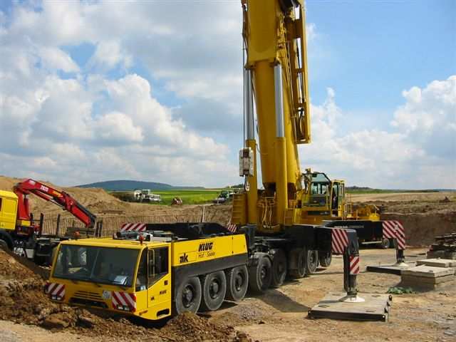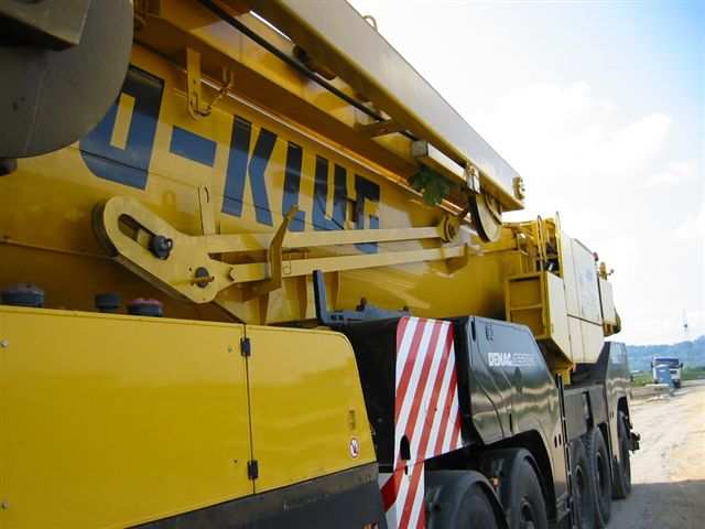 Terex-Demag AC 500/1 Autoklug montiert Brückenbinder