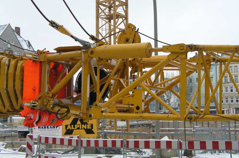 Hier wurde die Abspannung bereits vom Rollenkopf gelöst, die Enden der Abspannseile
