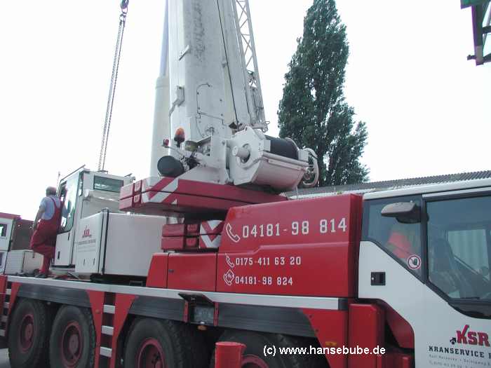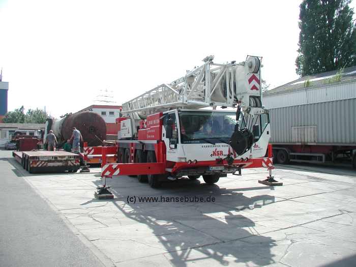 Auf dem Gelände der Schwerlastspedition Hamburg hatte der 60 Tonner im Juli 2002
