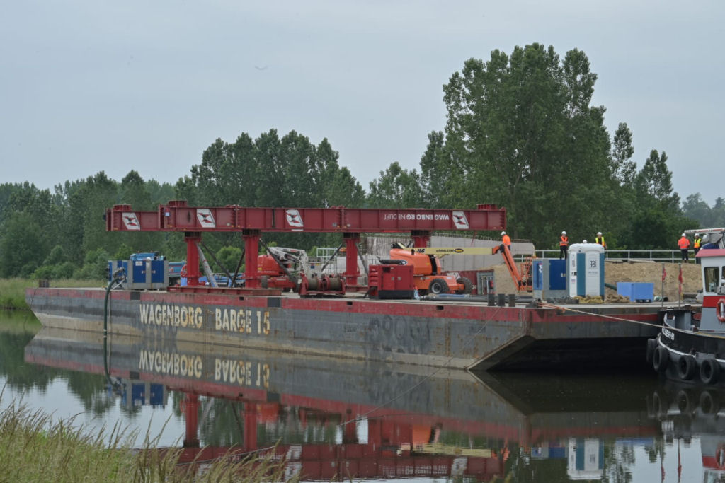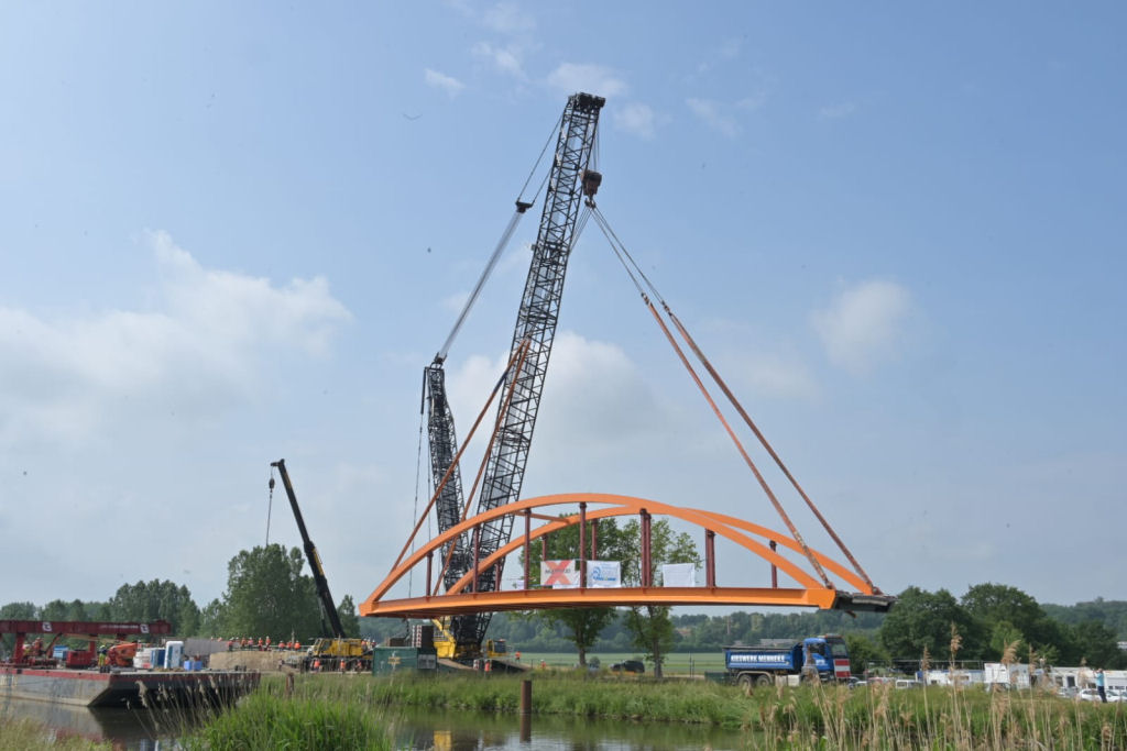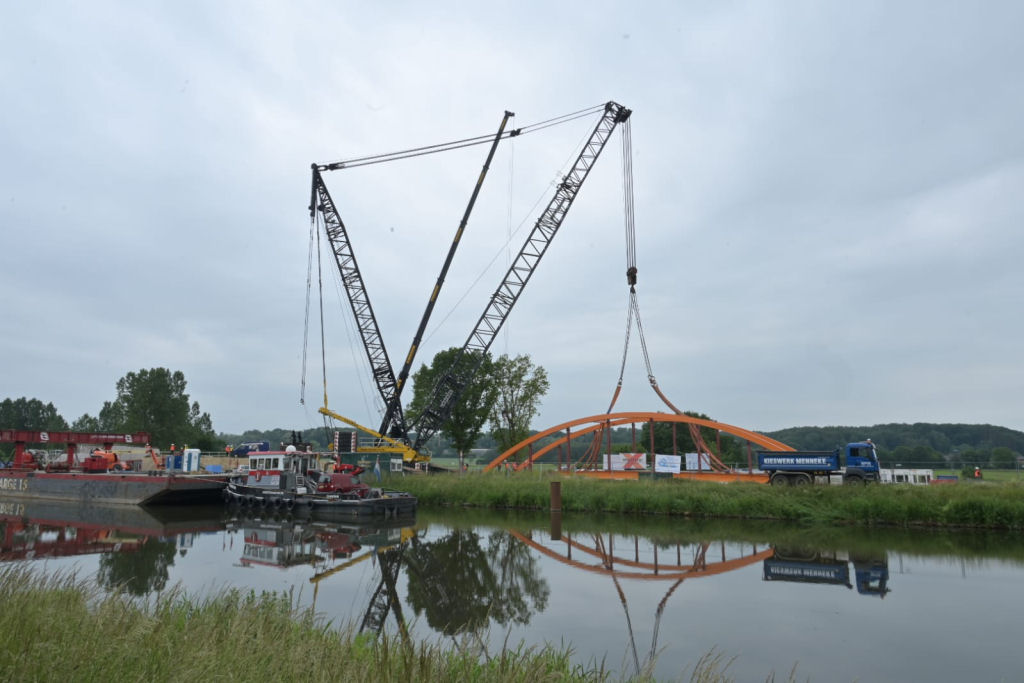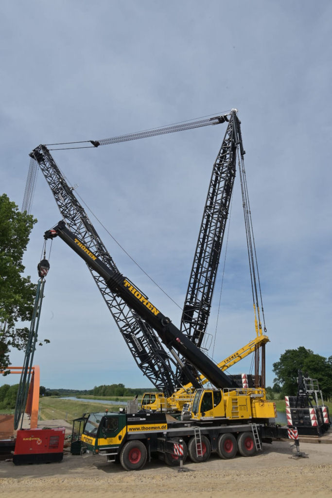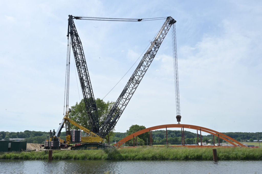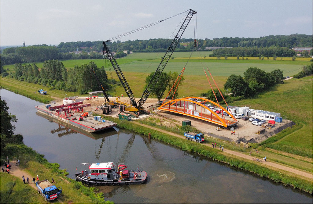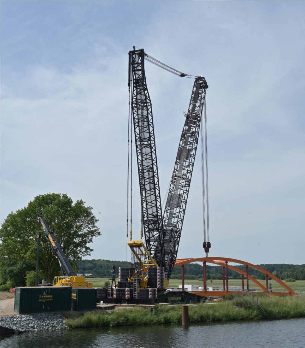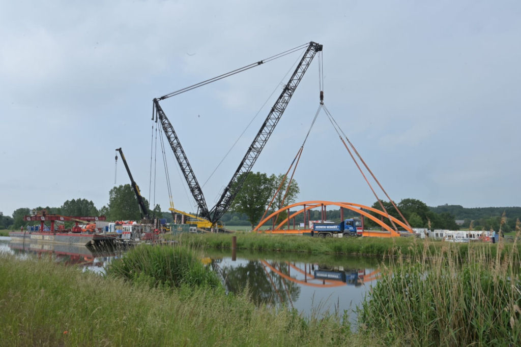 Einheben einer 180 t Kanalbrücke am Elbe Lübeck Kanal