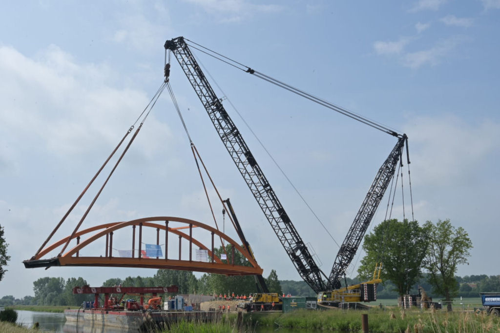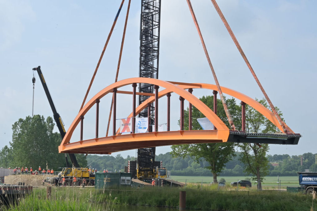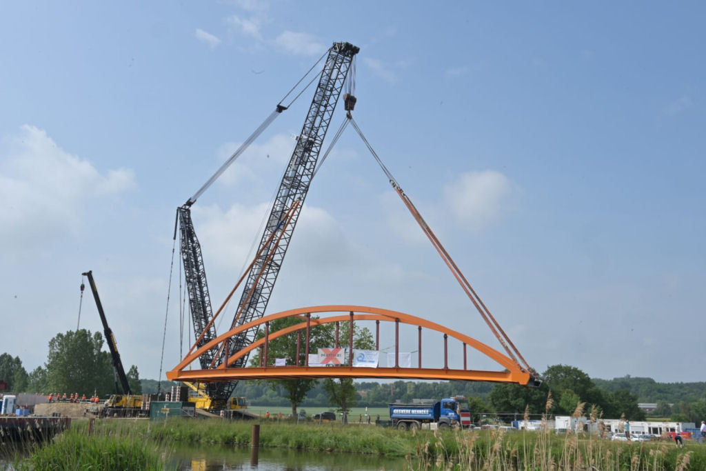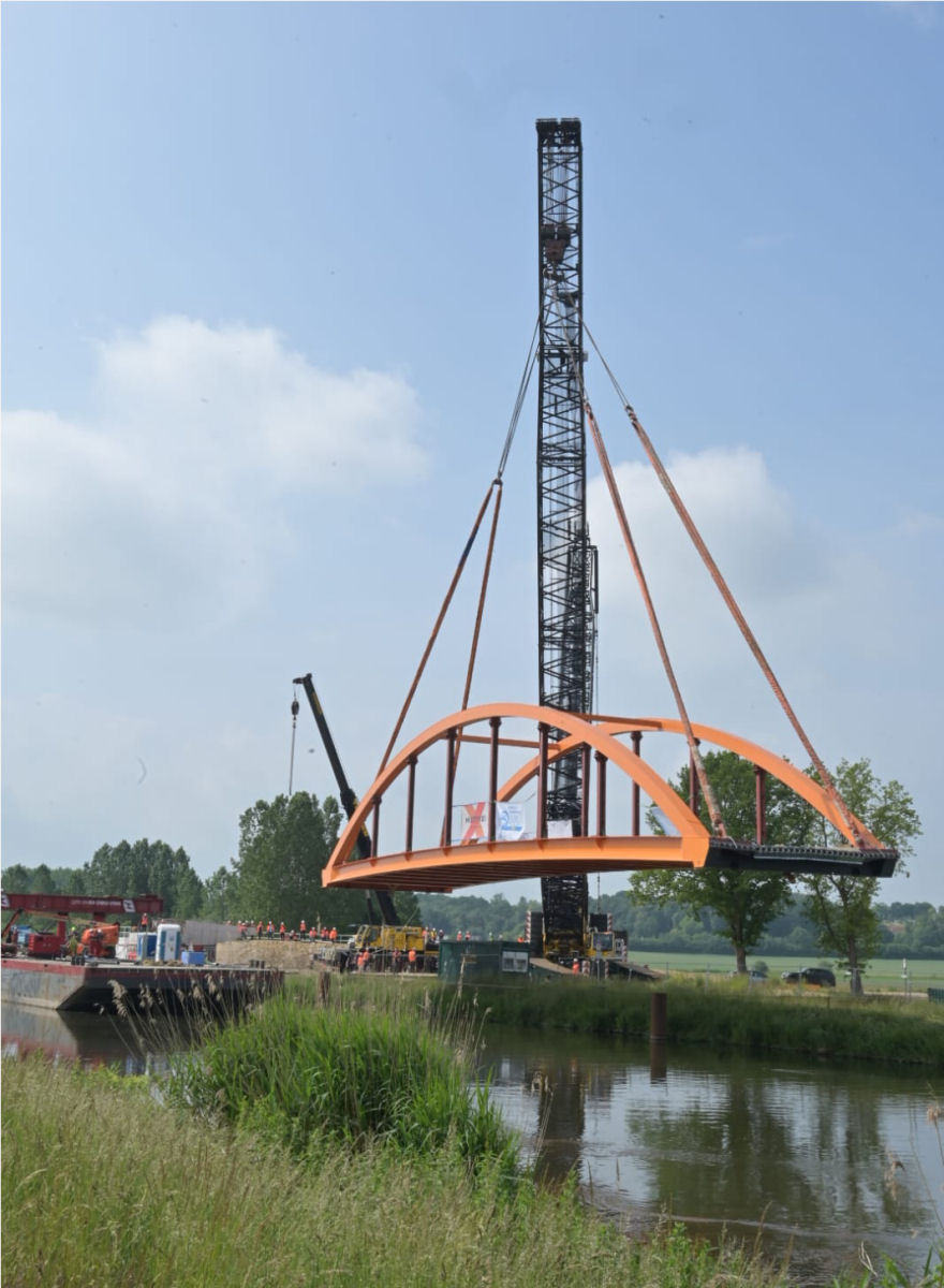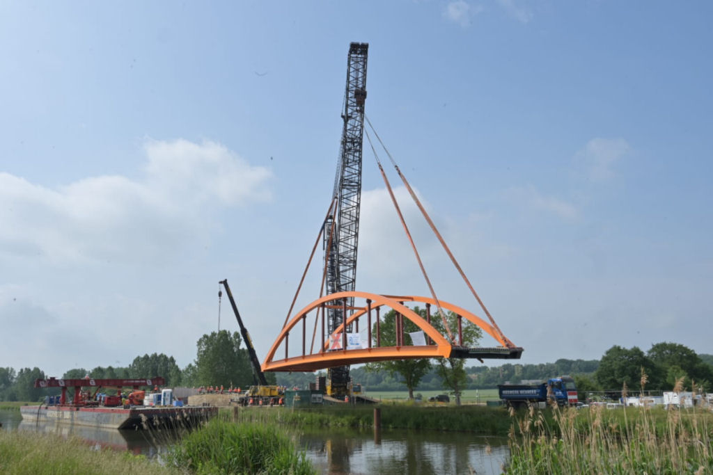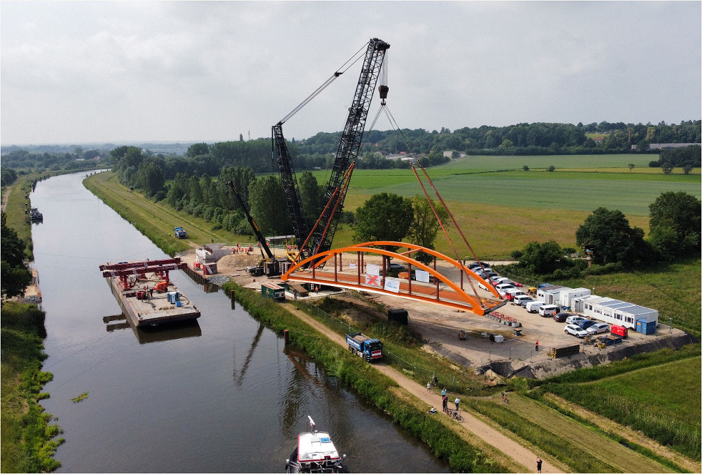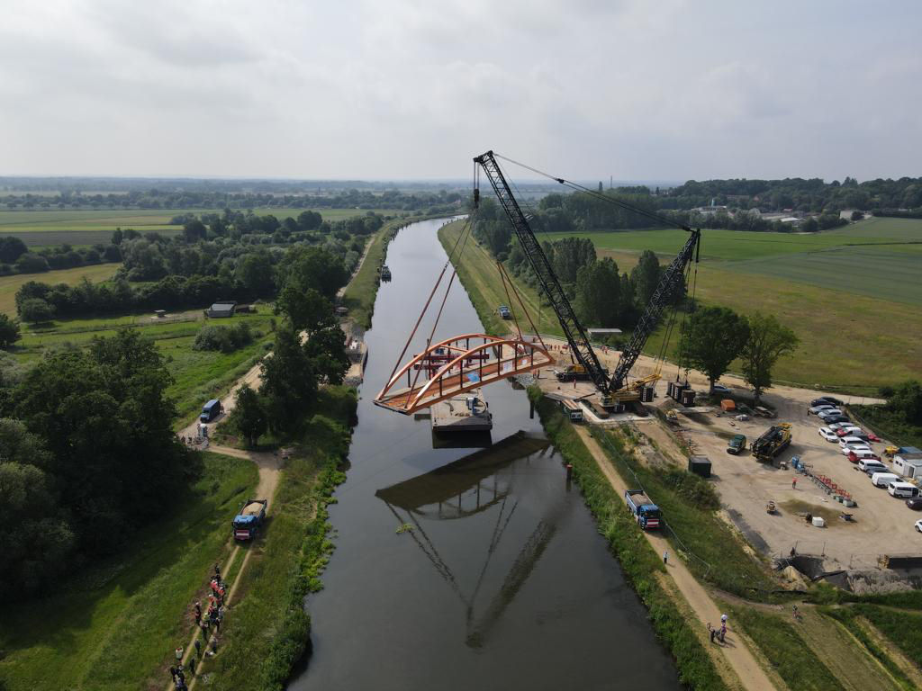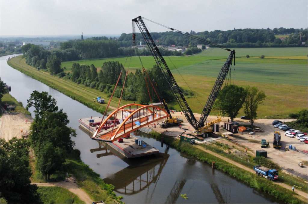 Einheben einer 180 t Kanalbrücke am Elbe Lübeck Kanal