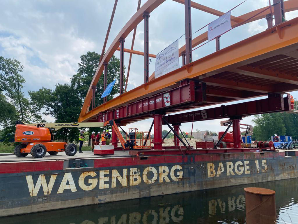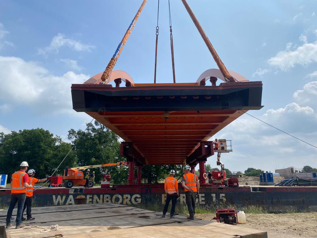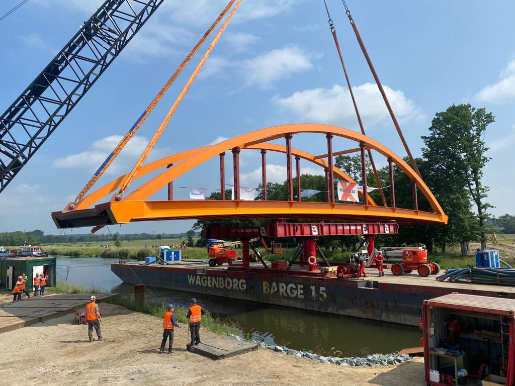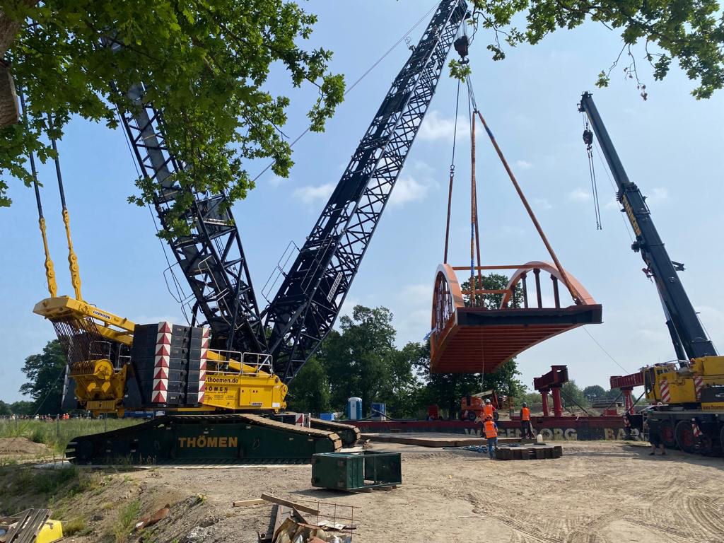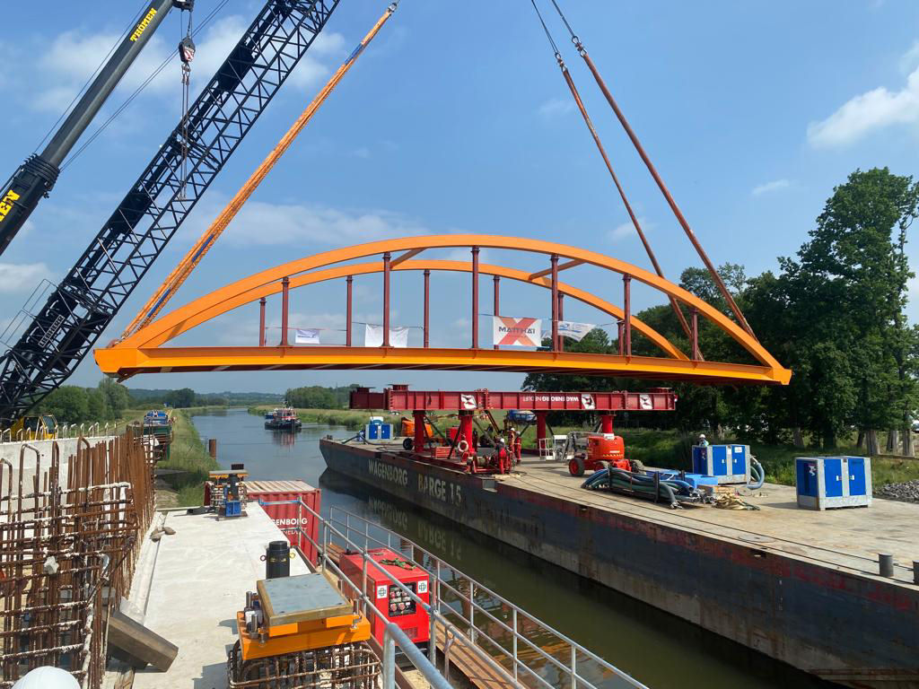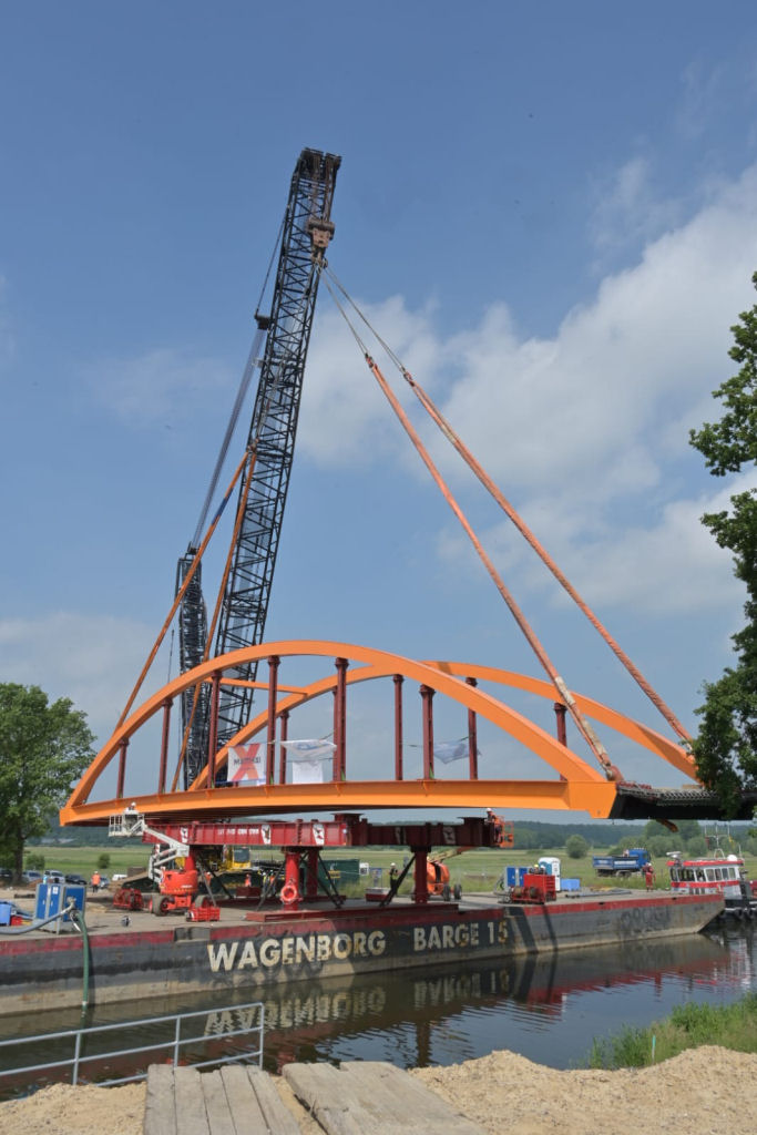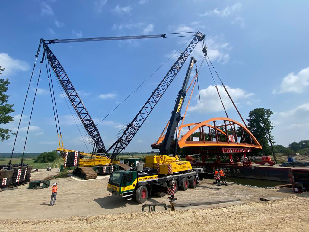 Einheben einer 180 t Kanalbrücke am Elbe Lübeck Kanal