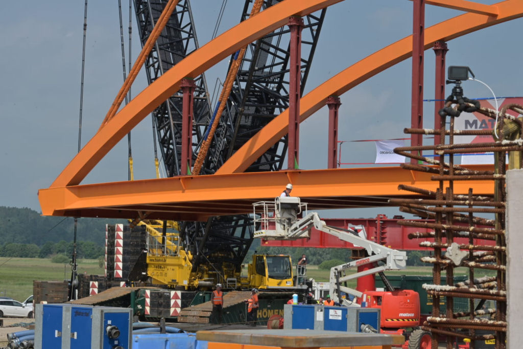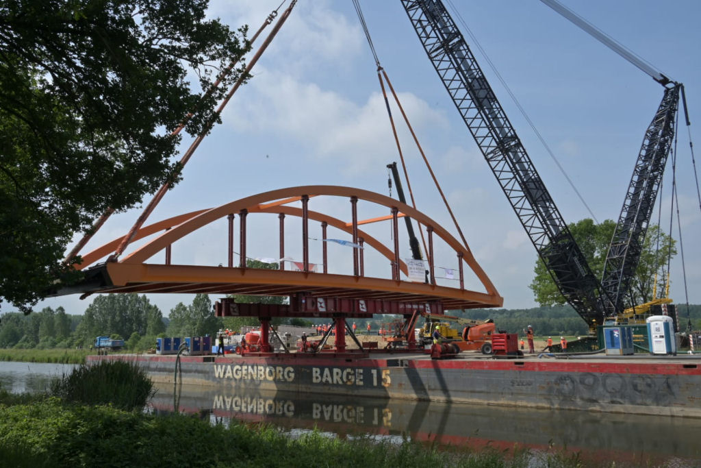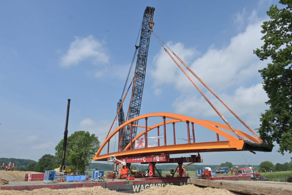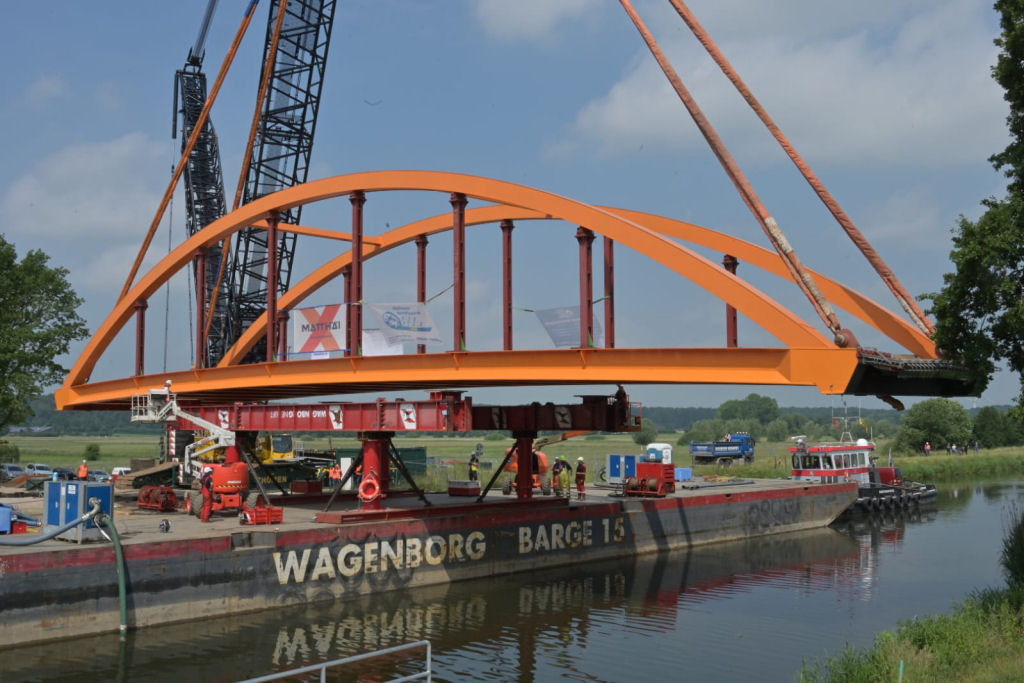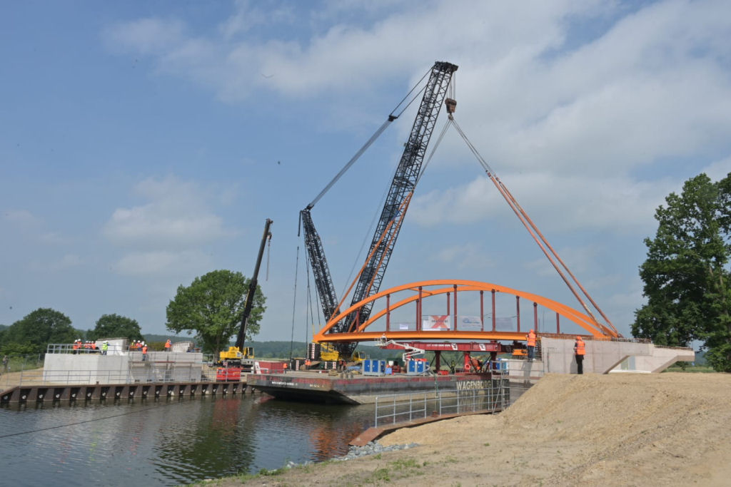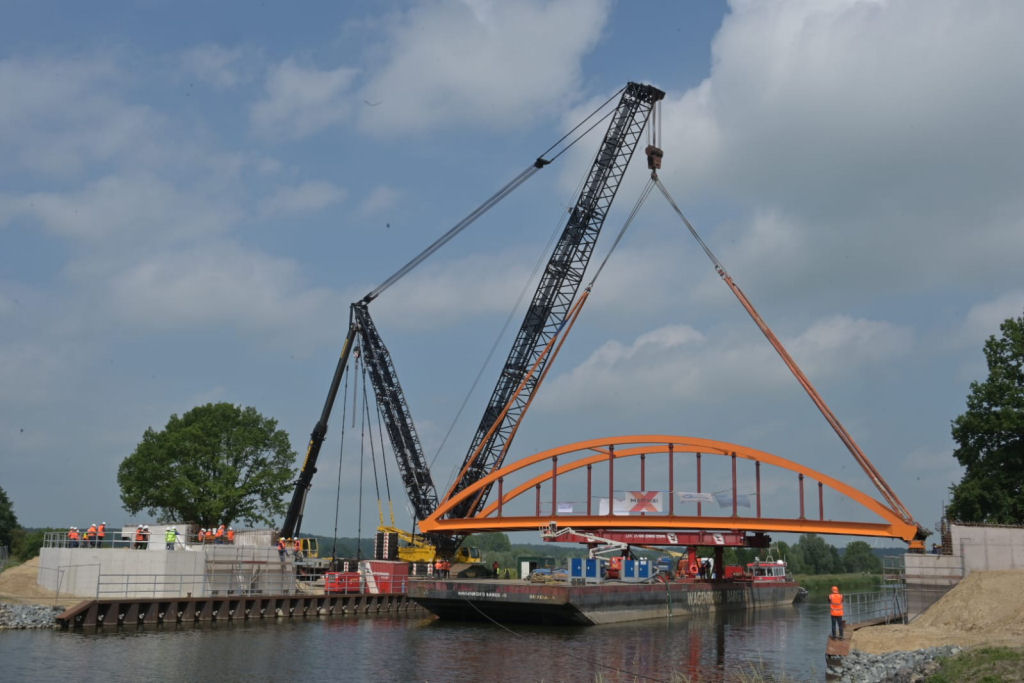 Einheben einer 180 t Kanalbrücke am Elbe Lübeck Kanal
