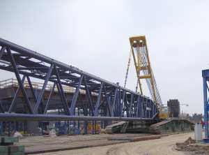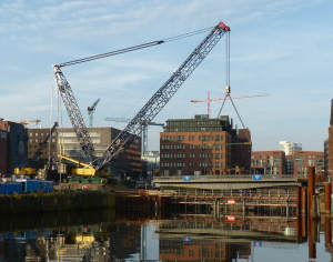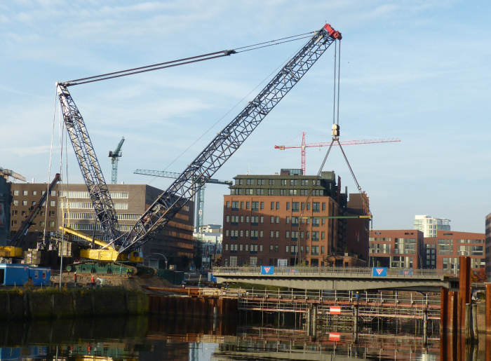 sowie anderen Industriebaustellen einsetzbar. Durch seinen maximal 140 m langen Hauptausleger, 105 m Wippspitze,