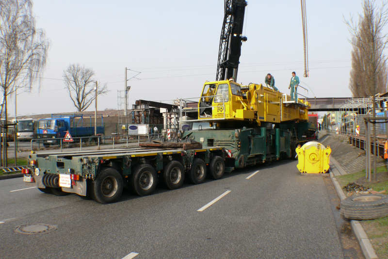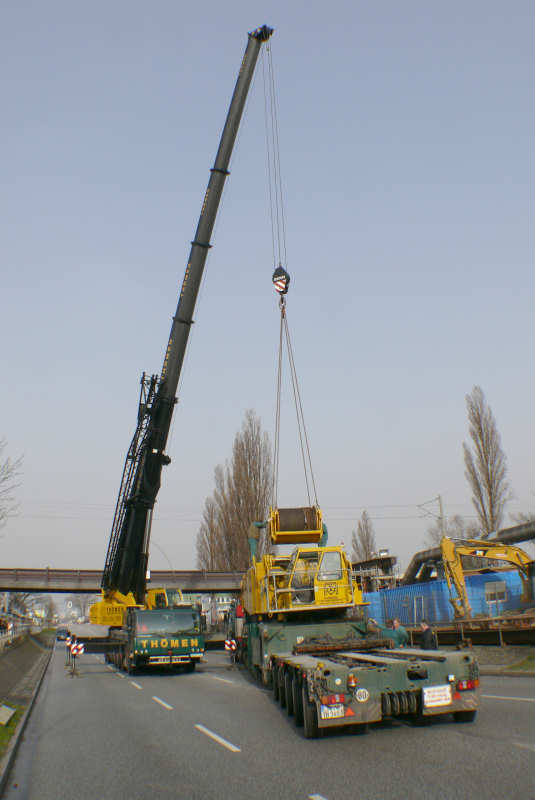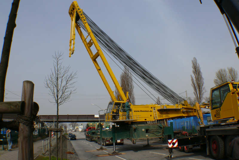 Der Raupenkran wurde am Tag vor dem geplanten Hub aufgebaut.
