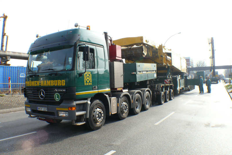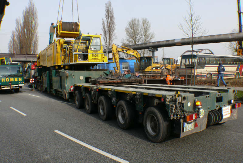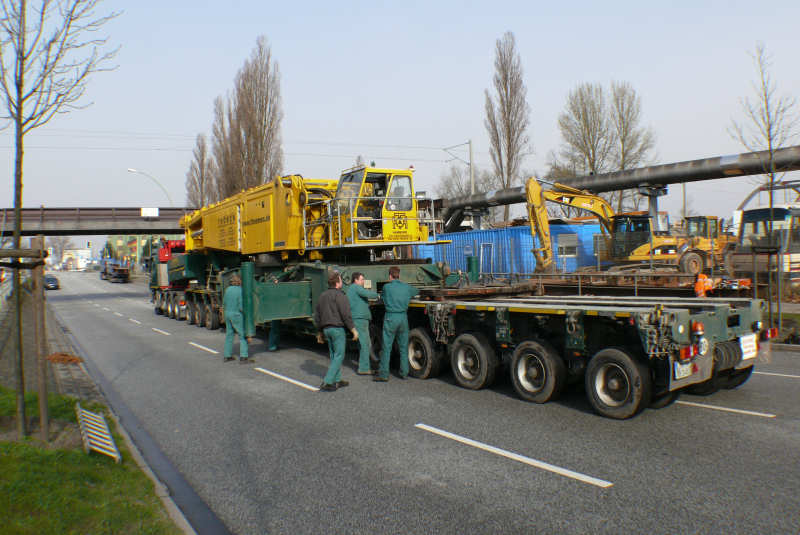 Nun wurde die Winde montiert und danach der Tieflader mit dem Grundgerät in die Aufstellposition rangiert.