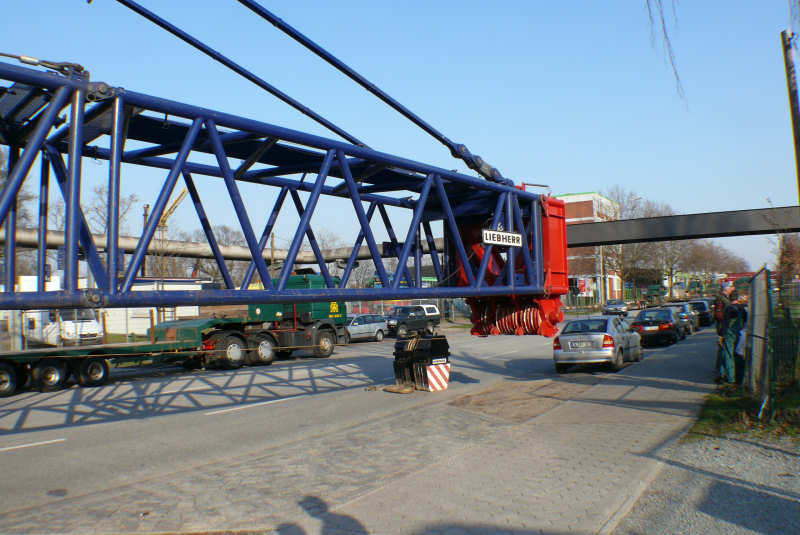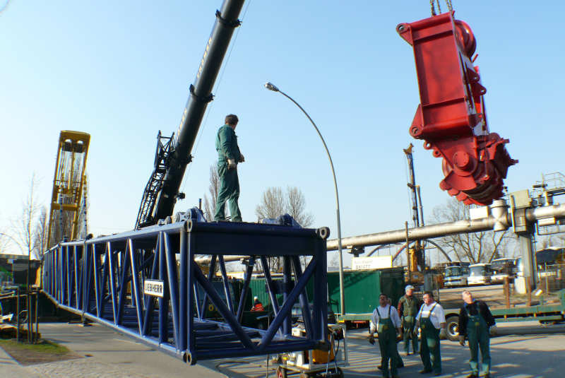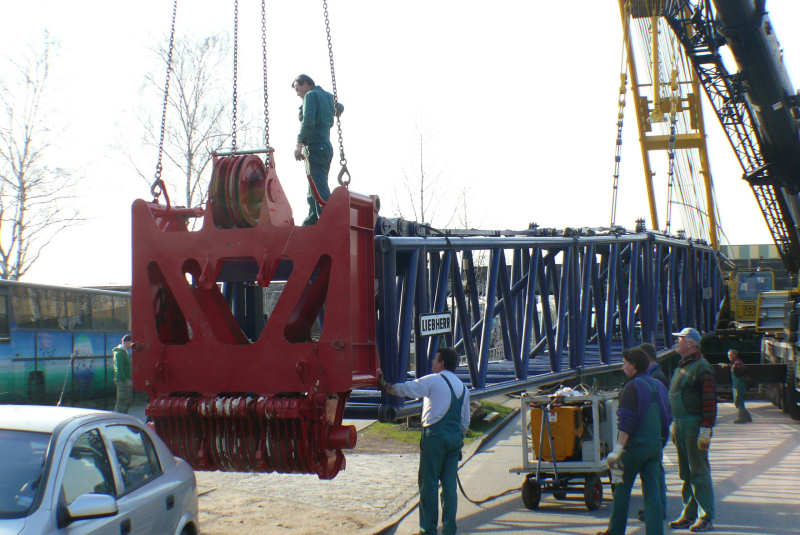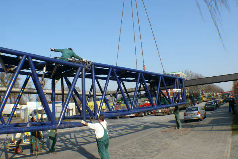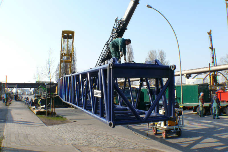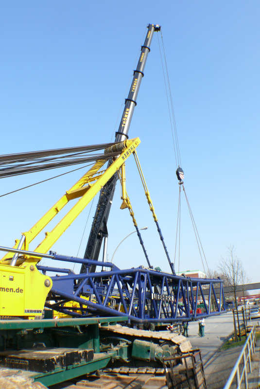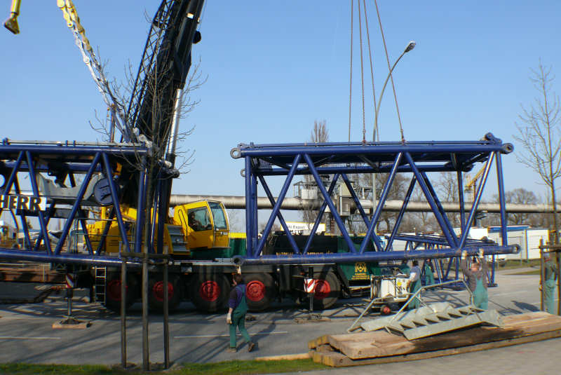 Der Ausleger ist komplett und die Abspannstangen bereits verbolzt und gespannt.