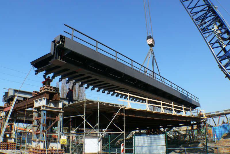 Bilder vom Einhub der Brückenteile
