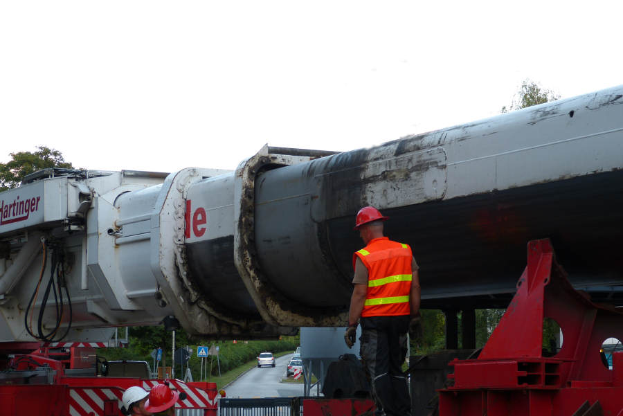 wird der Ausleger des 500ers in Transportstellung abgelegt.