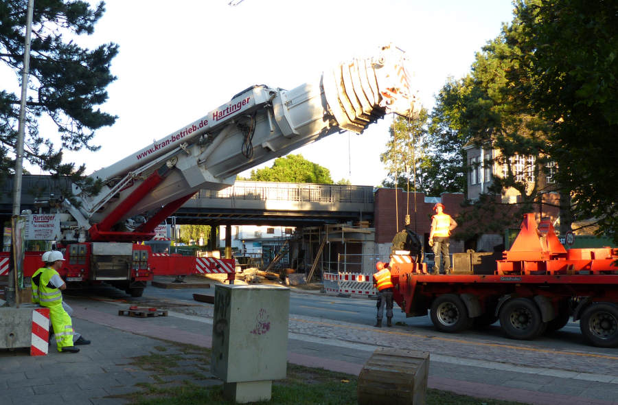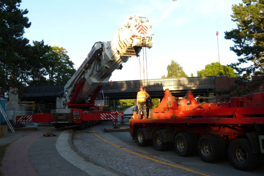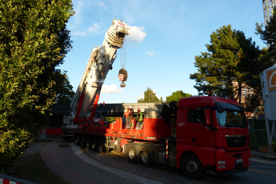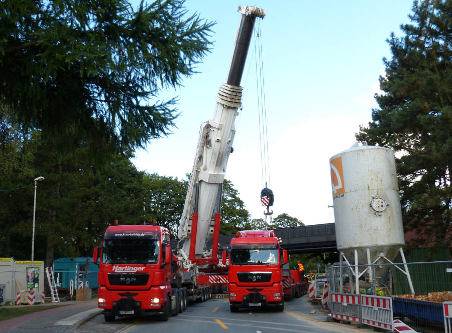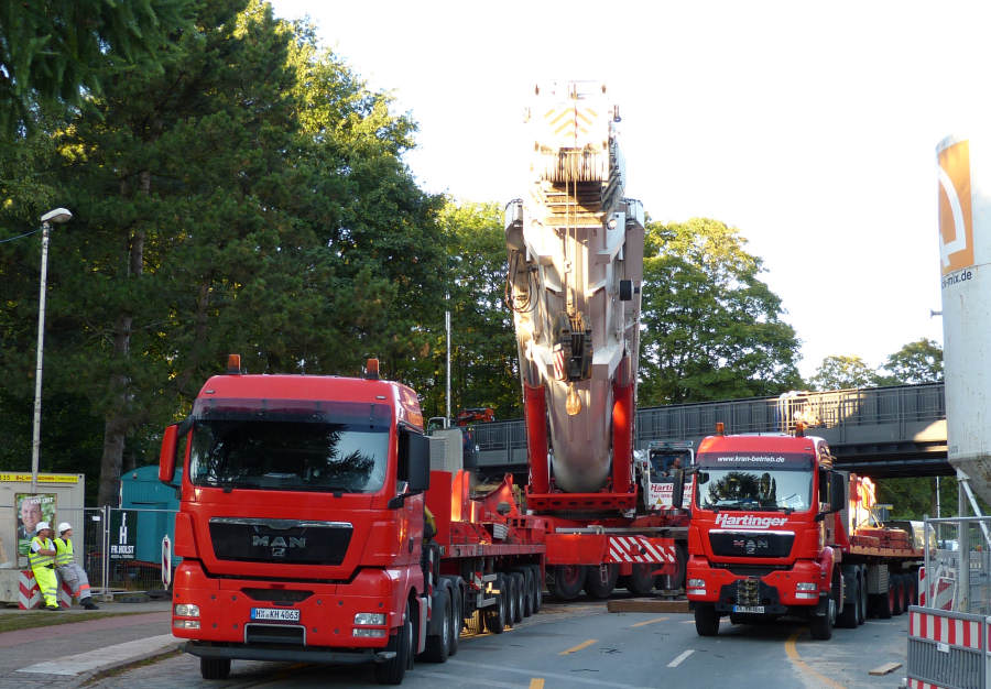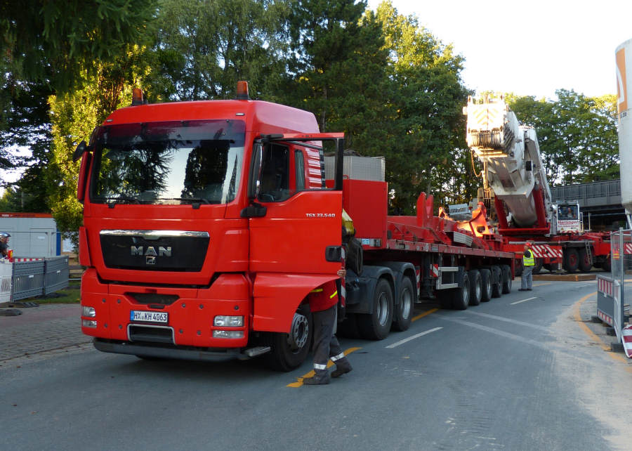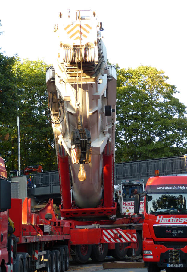 Damit der LTM 1500-8.1 mit 84 m Mast Ausrüstung auf deutschen Strassen verfahren werden darf,