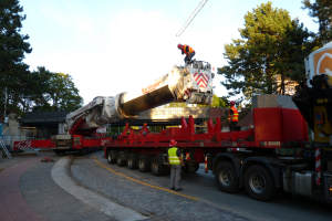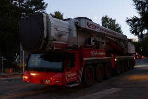 portiert werden. Die Ausschübe 2 - 6 werden auf einem fünfachsigen Goldhofer Teleauflieger