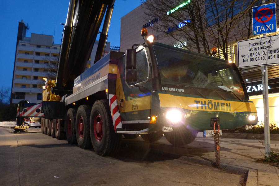 Anfang April 2013 hatte der LTM 1500-8.1 von Thömen Hamburg einen Einsatz am