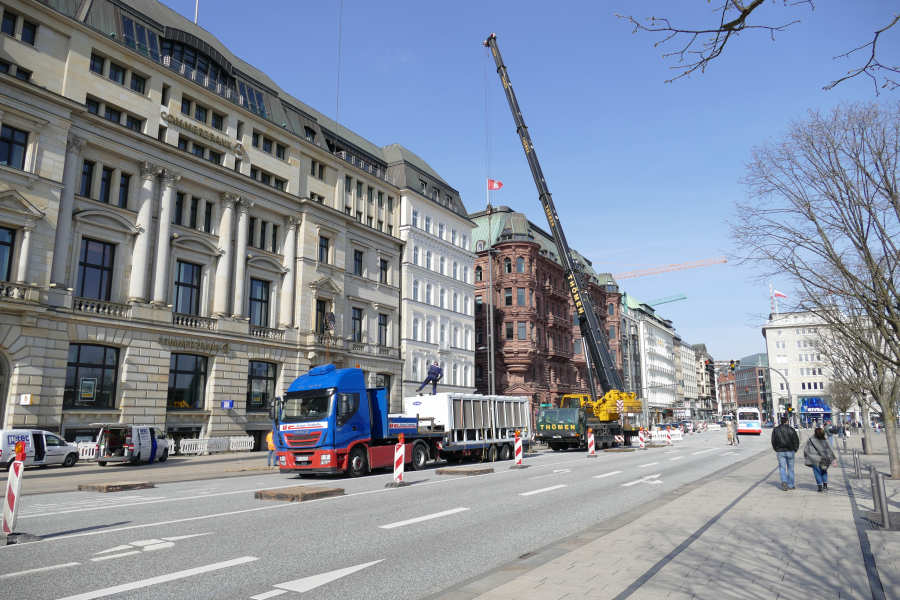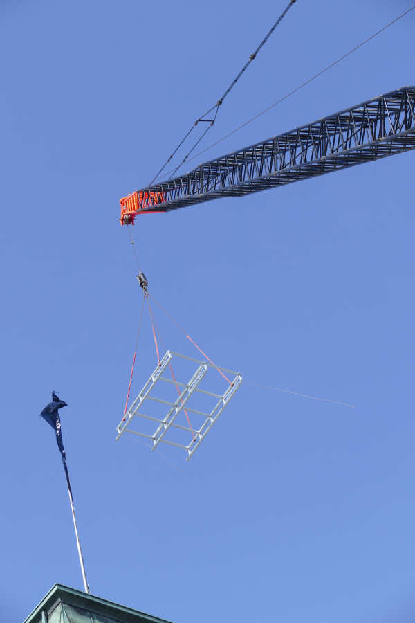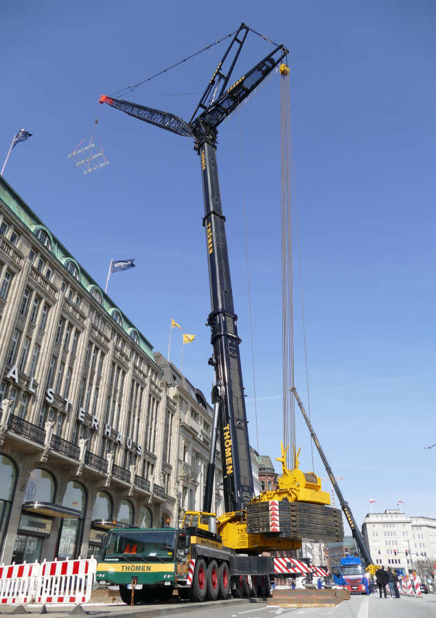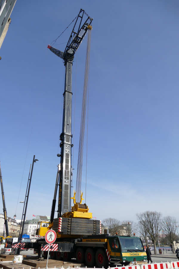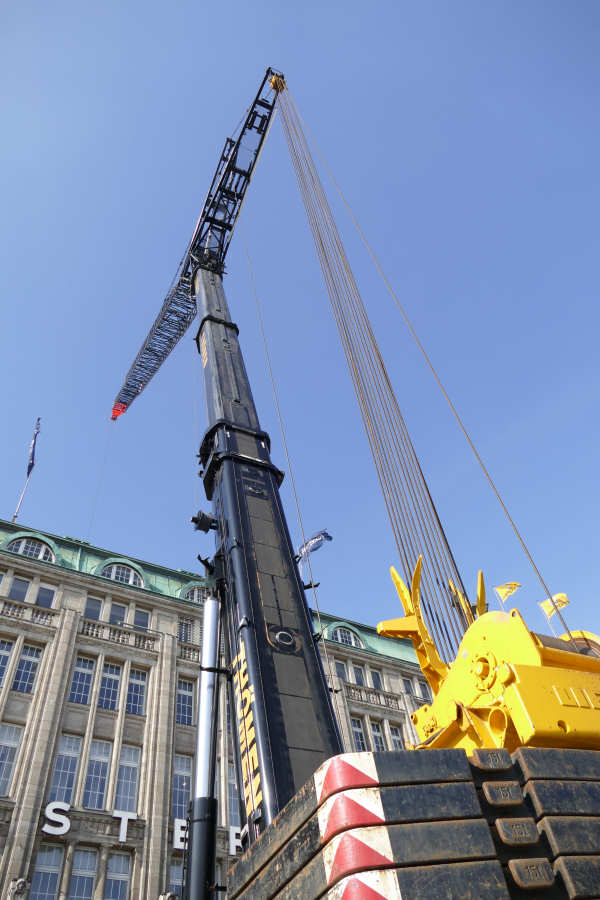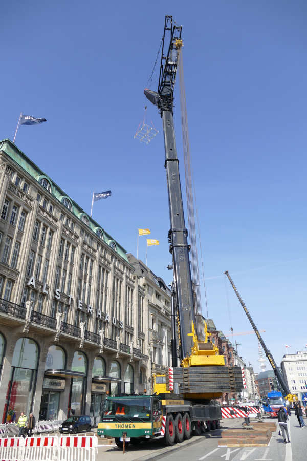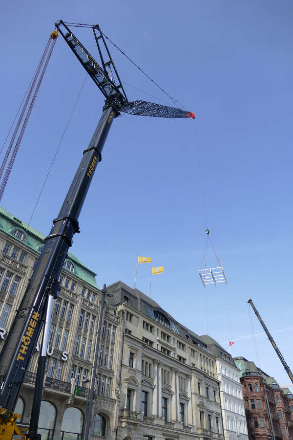 Einsatz mit 63 m Wippspitze beim Tausch einer Klimaanlage am Alsterhaus