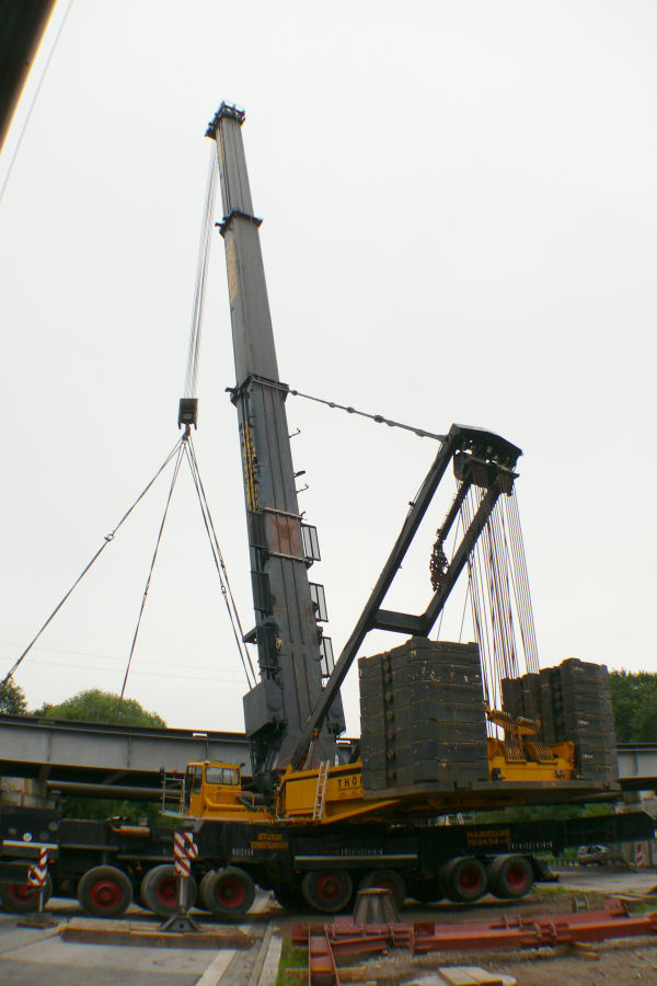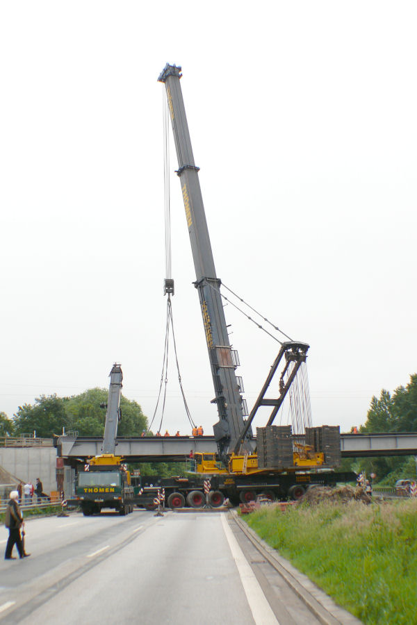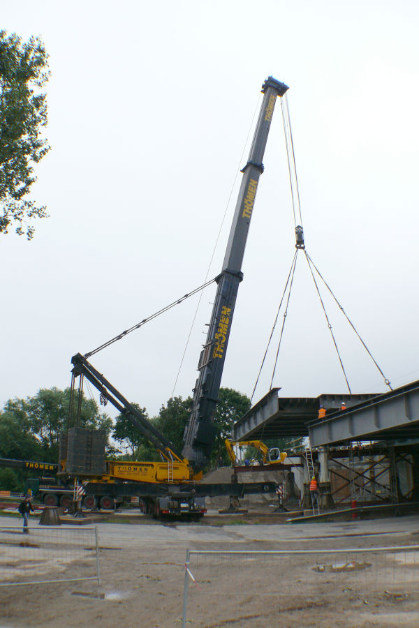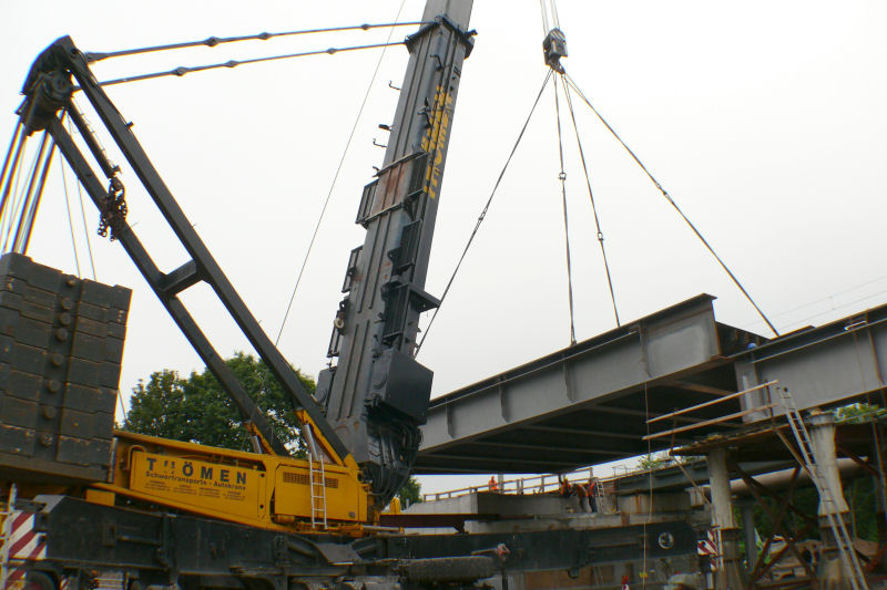 Hub und ablegen der Brücke auf die Hilfskonstruktion gehen schnell und problemlos vonstatten.