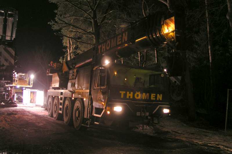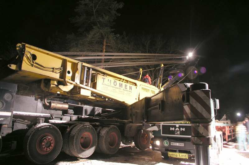 Der Hilfskran, war während der Mastdemontage aus dem Weg gefahren worden.