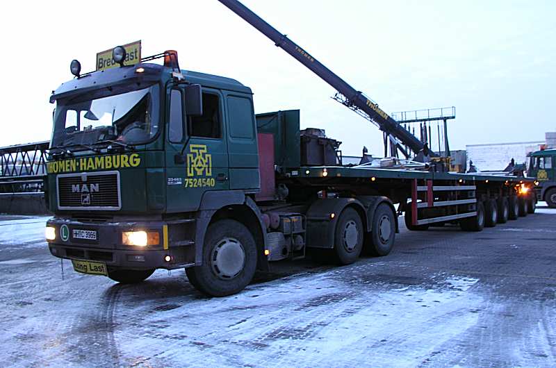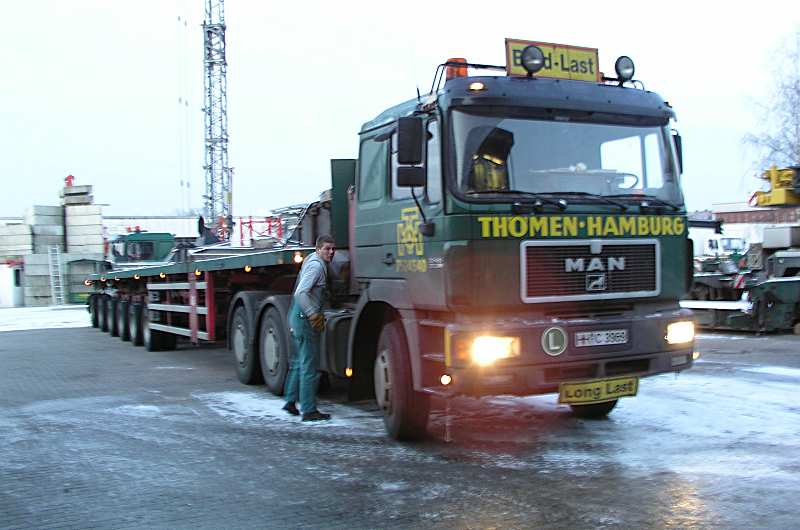 Am  Nachmittag, Jens P. hatte  den Nooteboom Masttransporter bereits  auf seine  dreiachsige MAN aufgesattelt