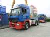 Vor dem Firmentor wurde man von den beiden neuen Zugmaschinen im Fuhrpark, Actros MP 2 und