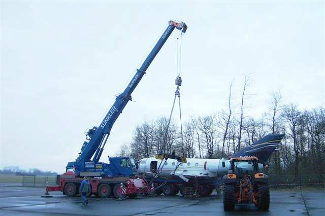 Flugzeugbergung in Kiel Holtenau durch Sünkler