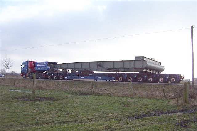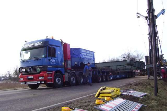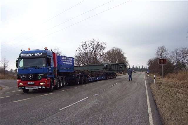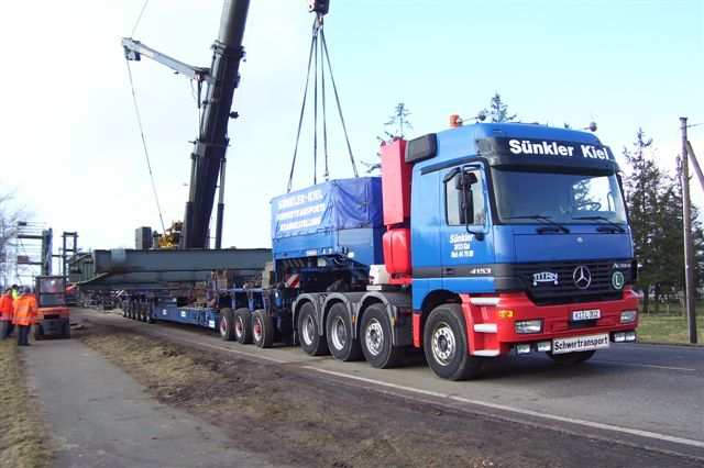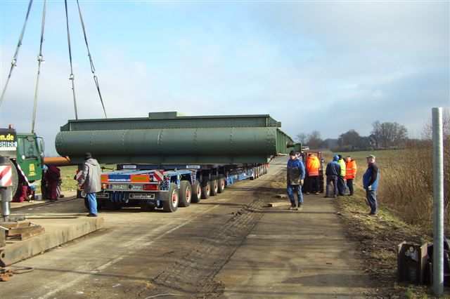 Der Tieflader macht sich mit dem Waagebalken auf den Weg zur Abladestelle.