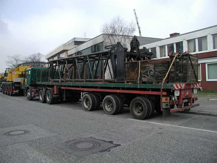 Am Heck werden noch Gitterboxen mit Anschlagmitteln mitgeführt.