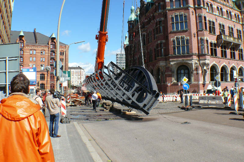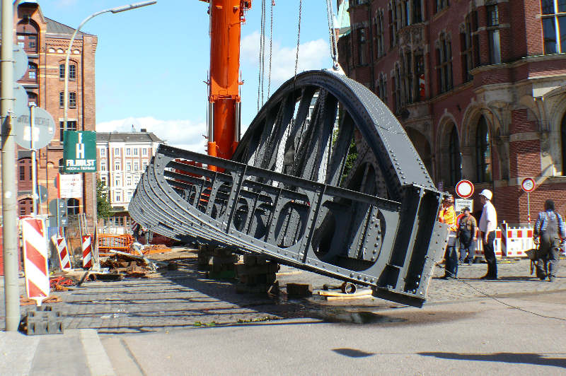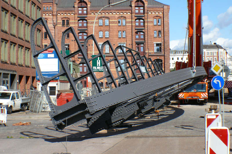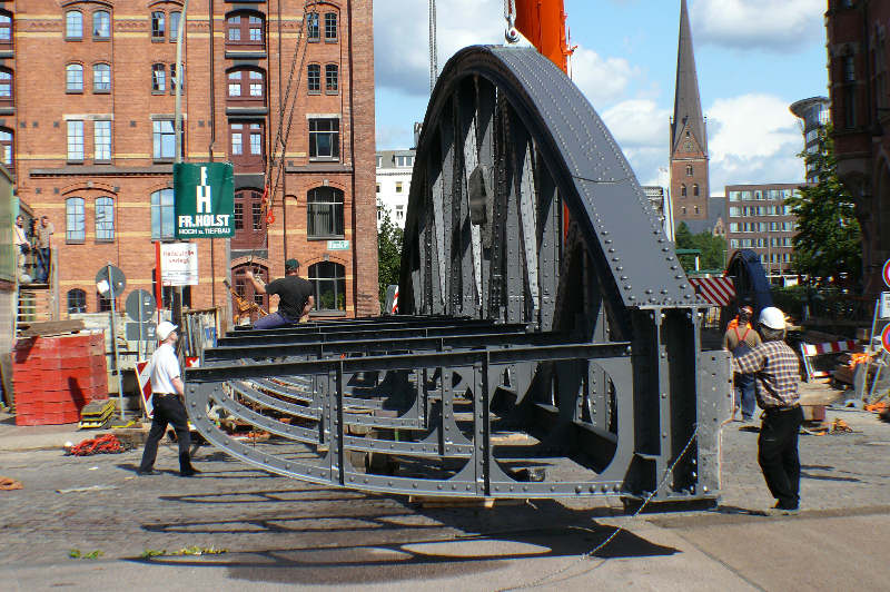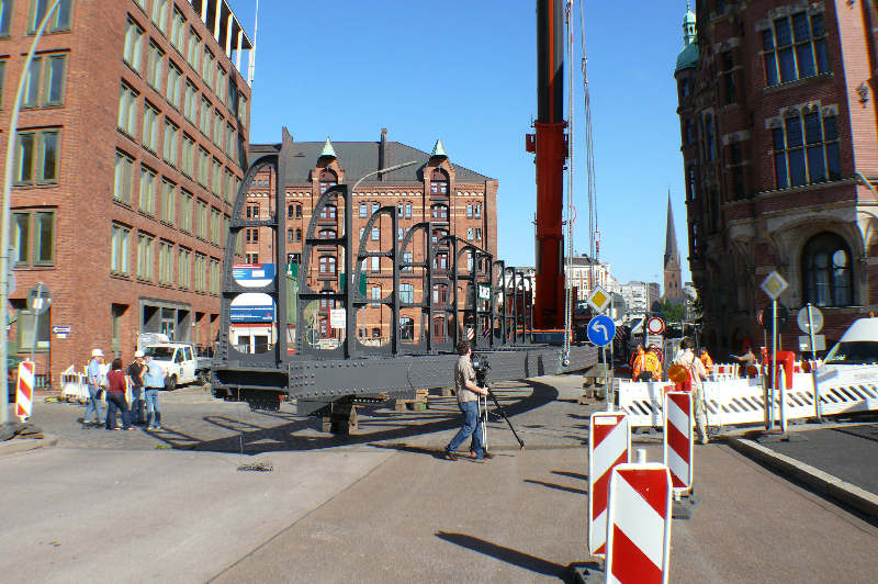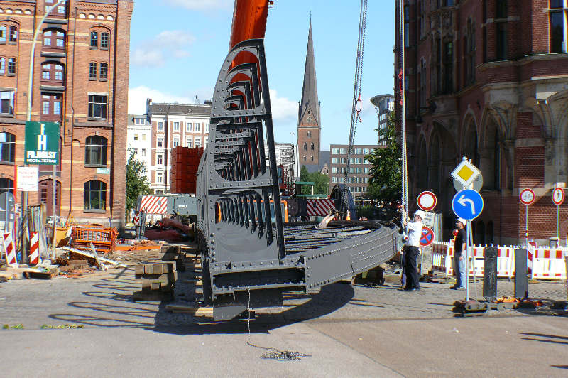 Brückenbogenmontage in der Hamburger Speicherstadt