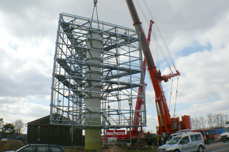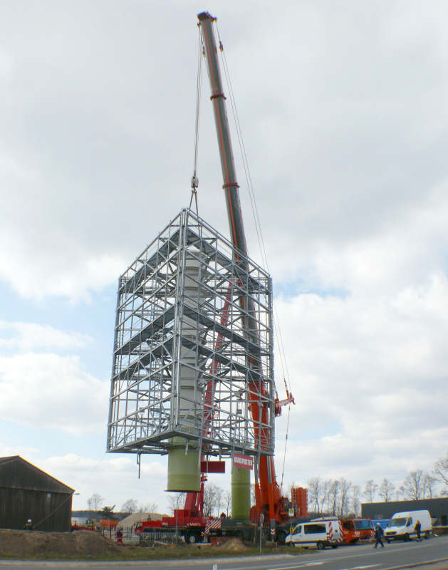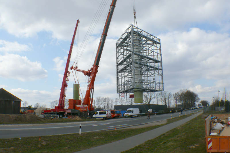 Montage eines Werbeturmes in Bispingen zurück