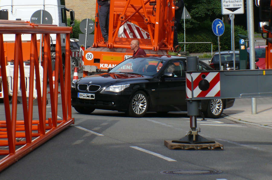 Erstaunlich welche Wege Autofahrer finden um in abgesperrte Kranbaustellen hieinzufahren....