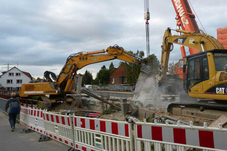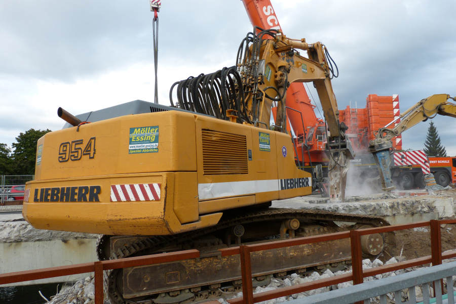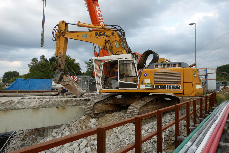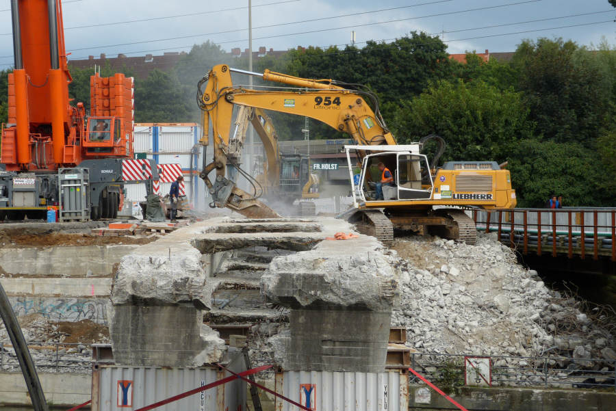 Abbruch eines 300 t Betonbinders über der Alster