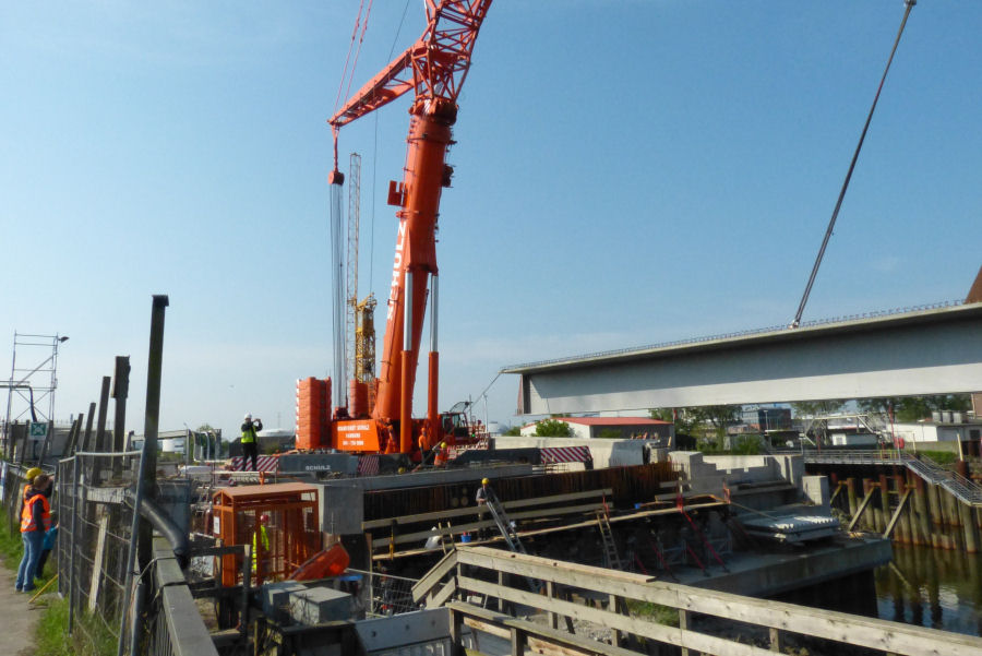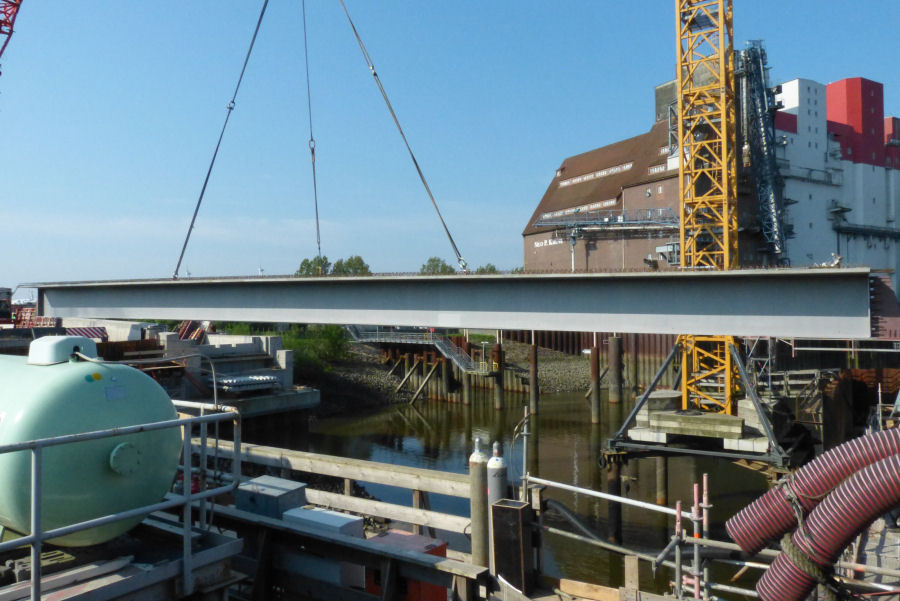 Einhub von Bindern für die neue Rethe Klappbrücke