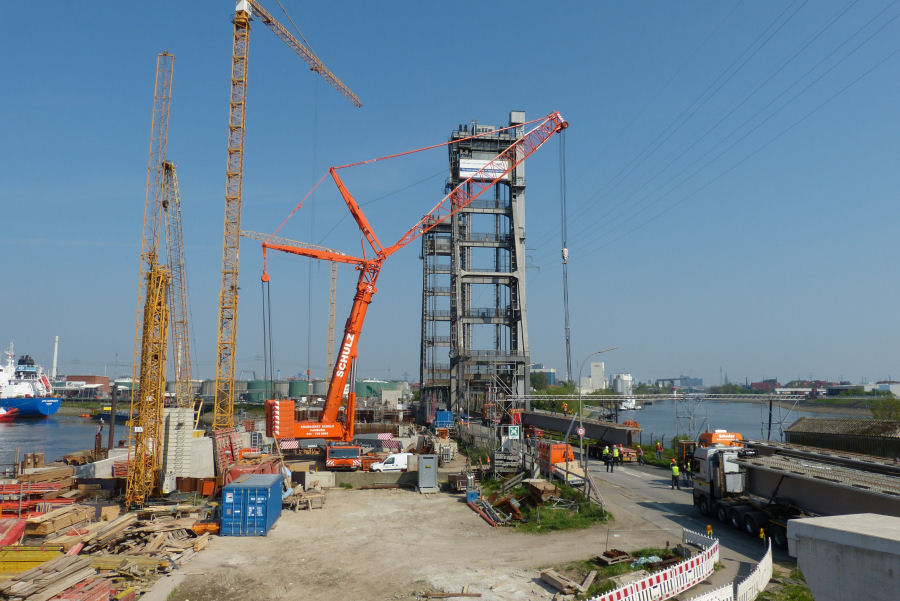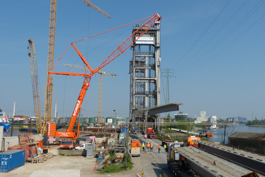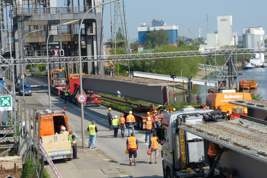 Einhub von Bindern für die neue Rethe Klappbrücke
