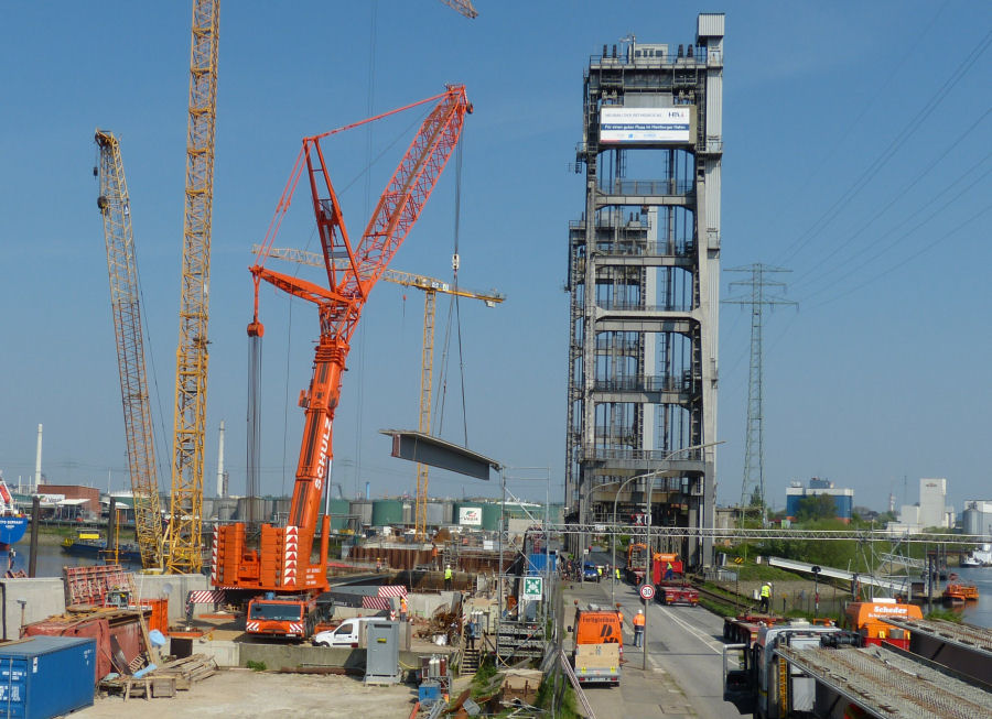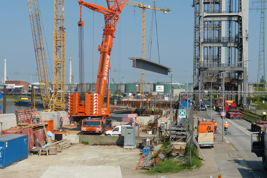 Einhub von Bindern für die neue Rethe Klappbrücke