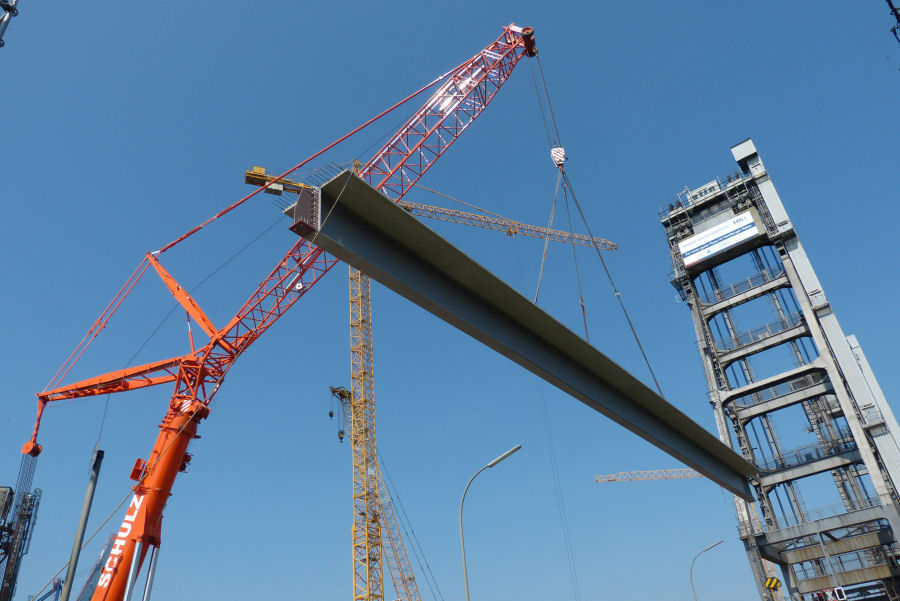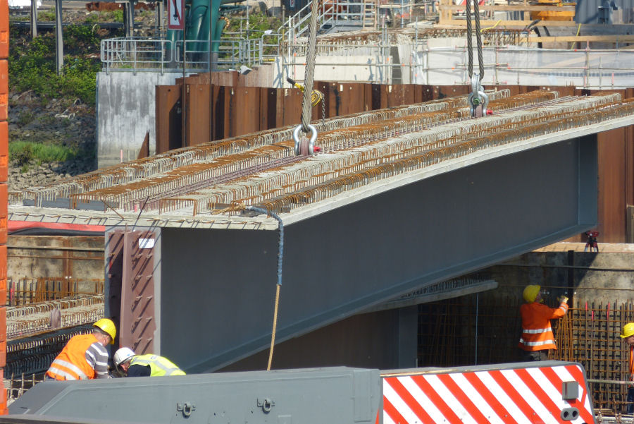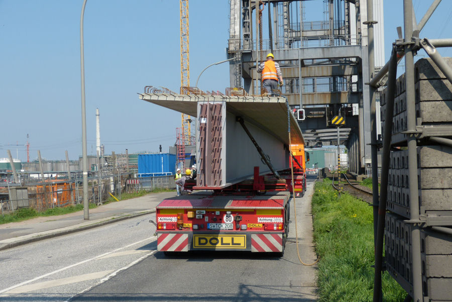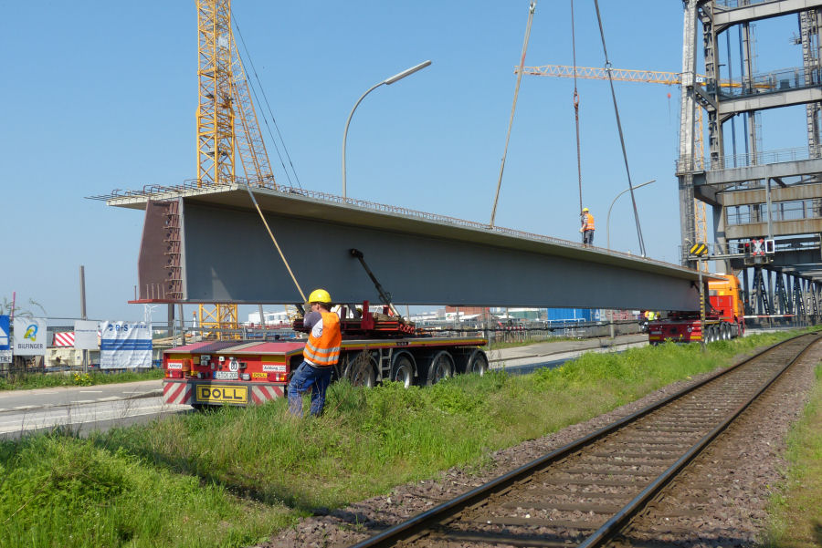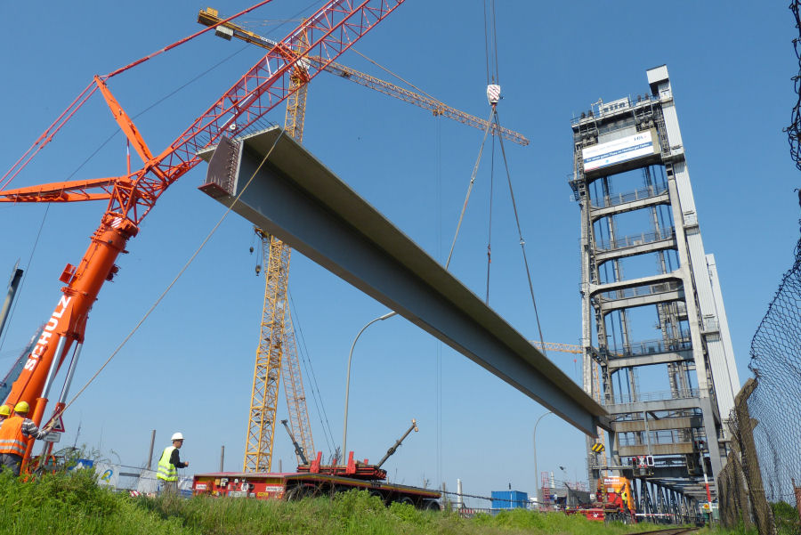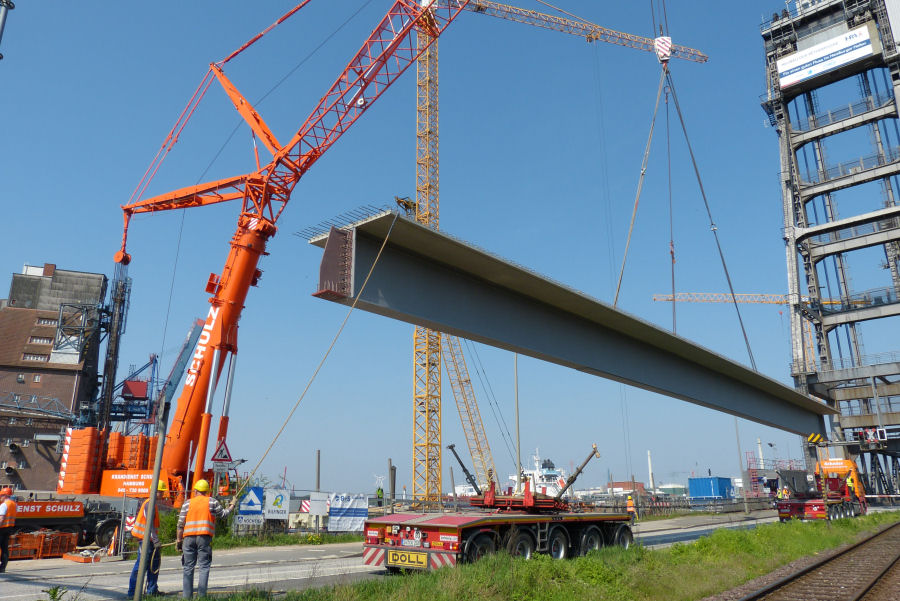 Einhub von Bindern für die neue Rethe Klappbrücke