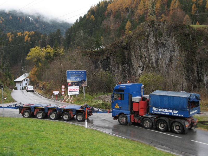 Im November 207 gab es bei Ginzling, in den Tiroler Alpen, die spektakuläre Anlieferung eines 80 t