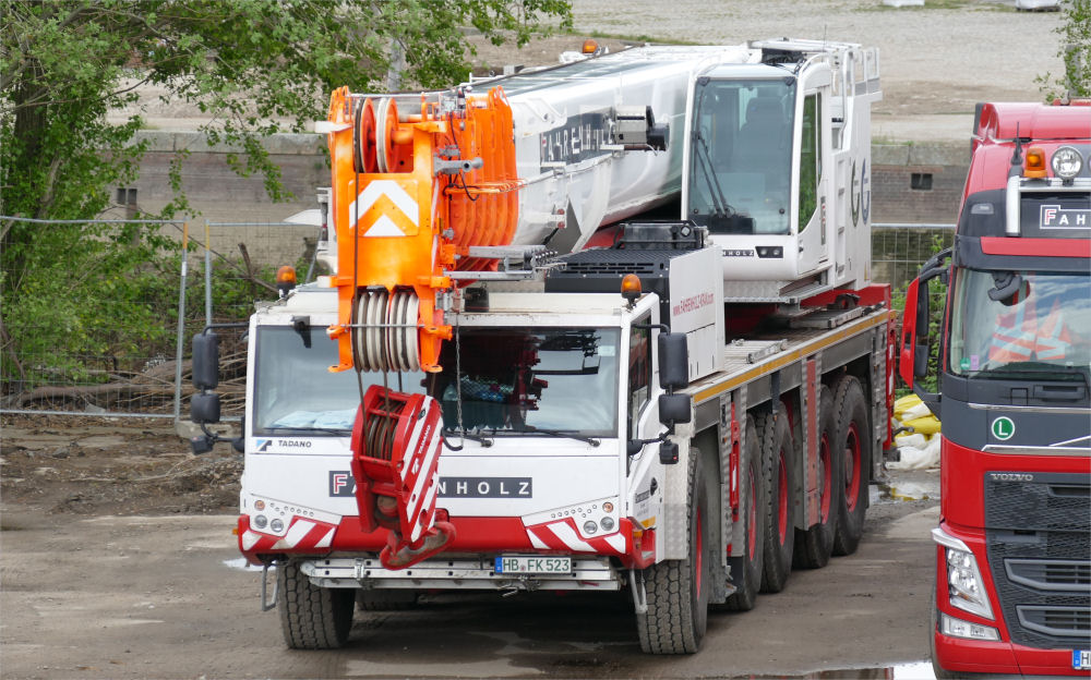 Im Sommer 2019 hatte Fahrenholz einen Einsatz am Neubau des S Bahnhof Elbbrücken, ua. war auch der 220er im Einsatz.