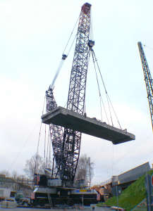 Montage von Betonbauteilen für eine Bahnunterführung in HH Eidelstedt |