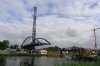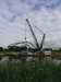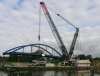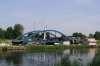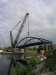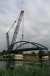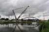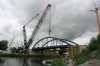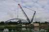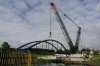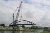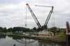 und in einem Rutsch. Die Brücke wurde mittels Halteleinen, teilweise auf dem gesperrten Kanal, geführt.