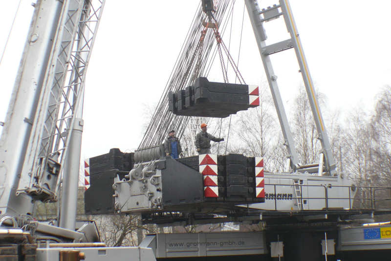 Hierzu wurde der Kran mit 49 m S / Li Ausleger, 31,5 m Derrick und 262,5 t