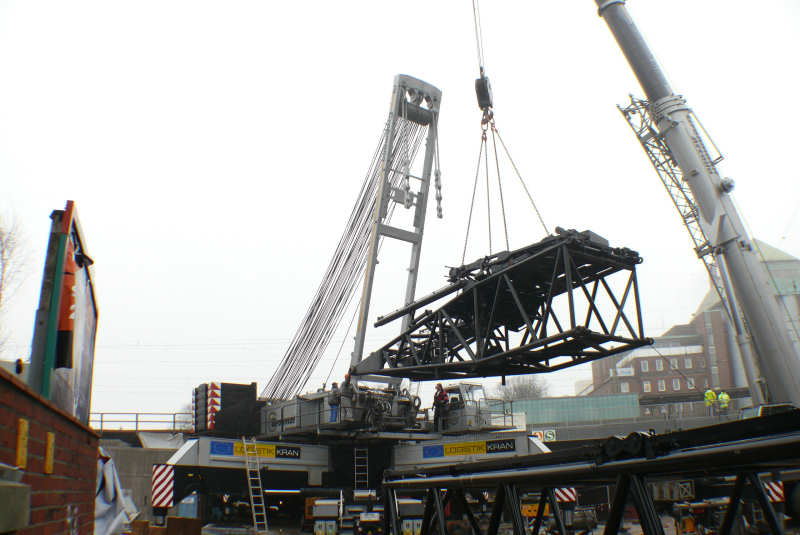 Der Oberwagen war bereits aufgesetzt, als ich an der Baustelle ankam und ein Teil des Drehbühnenballasts montiert.