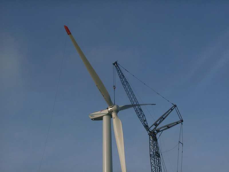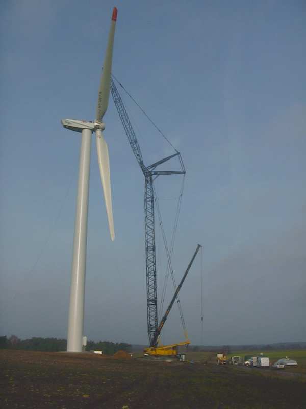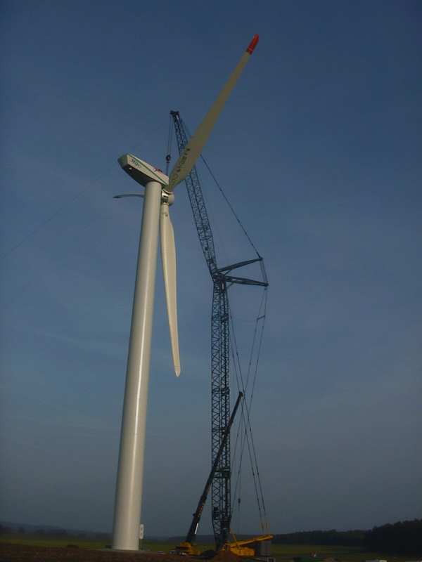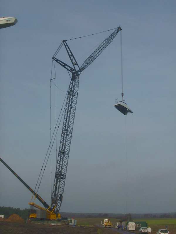 Nach der Rotormontage muß noch das Dach des Generatorenhauses aufgesetzt werden.