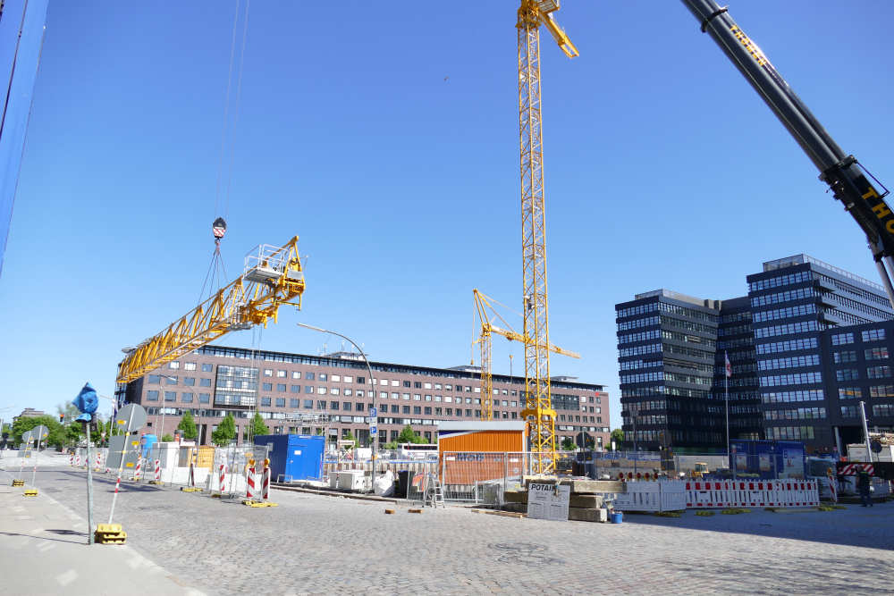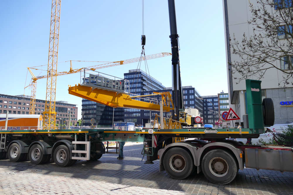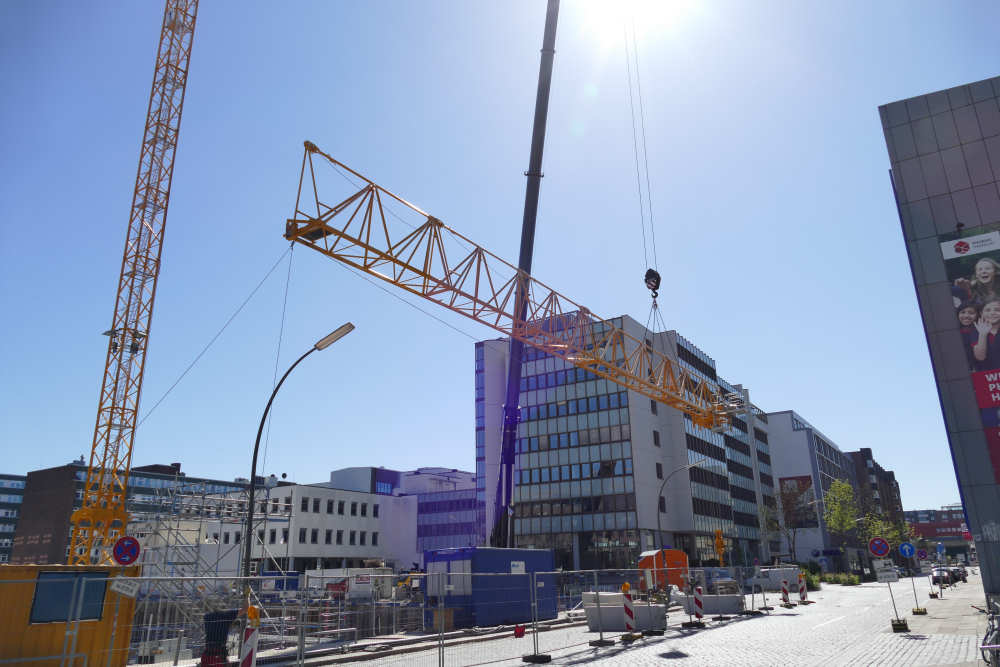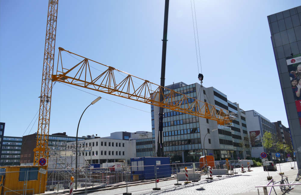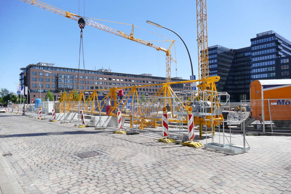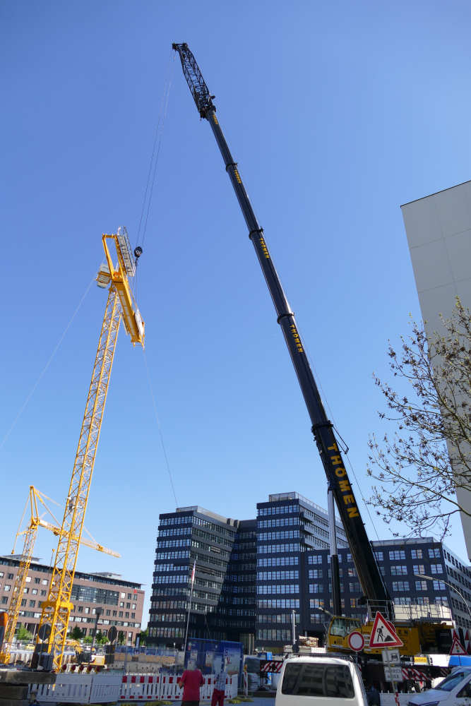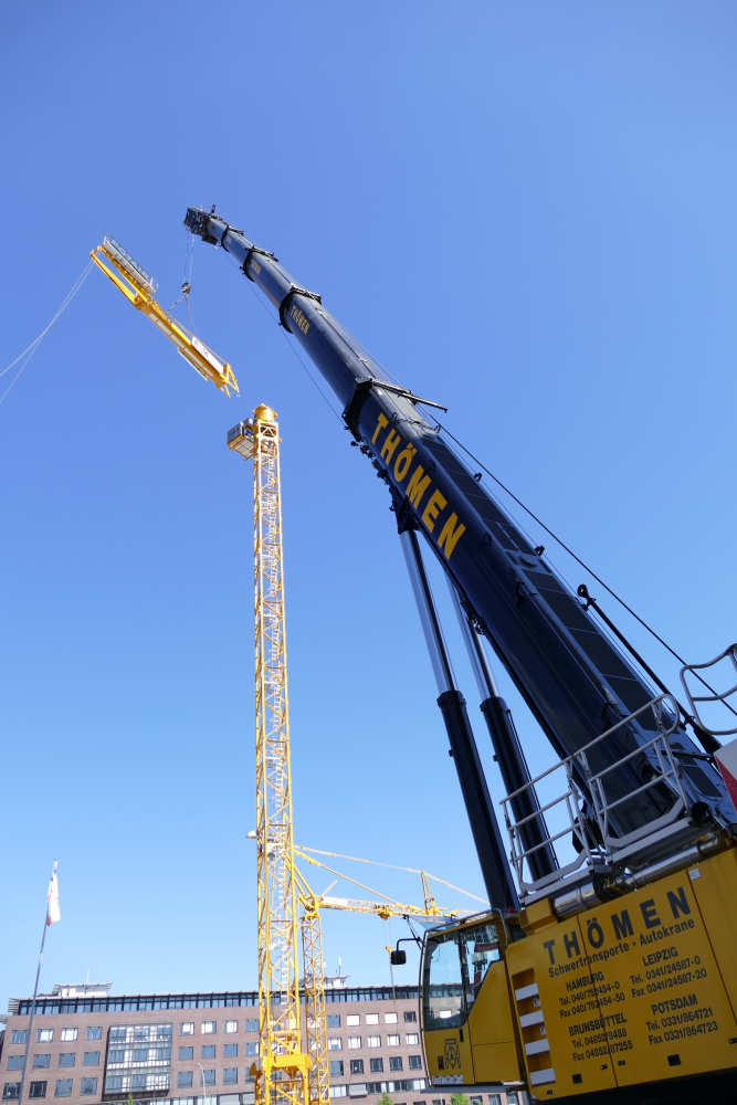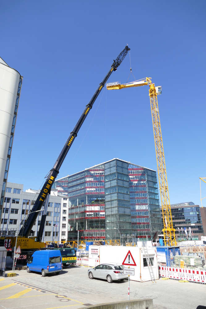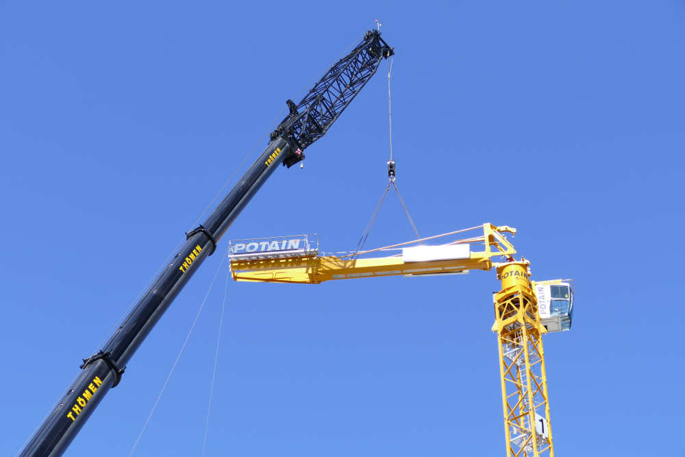 Montage eines Potain MD 219 Baukranes