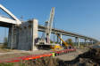 Besonders knifflig war, daß man mit dem Kran möglichst dicht an den Brückenpfeiler mit dem Widerlager