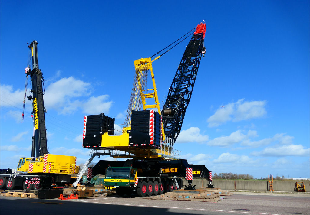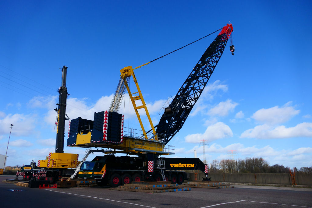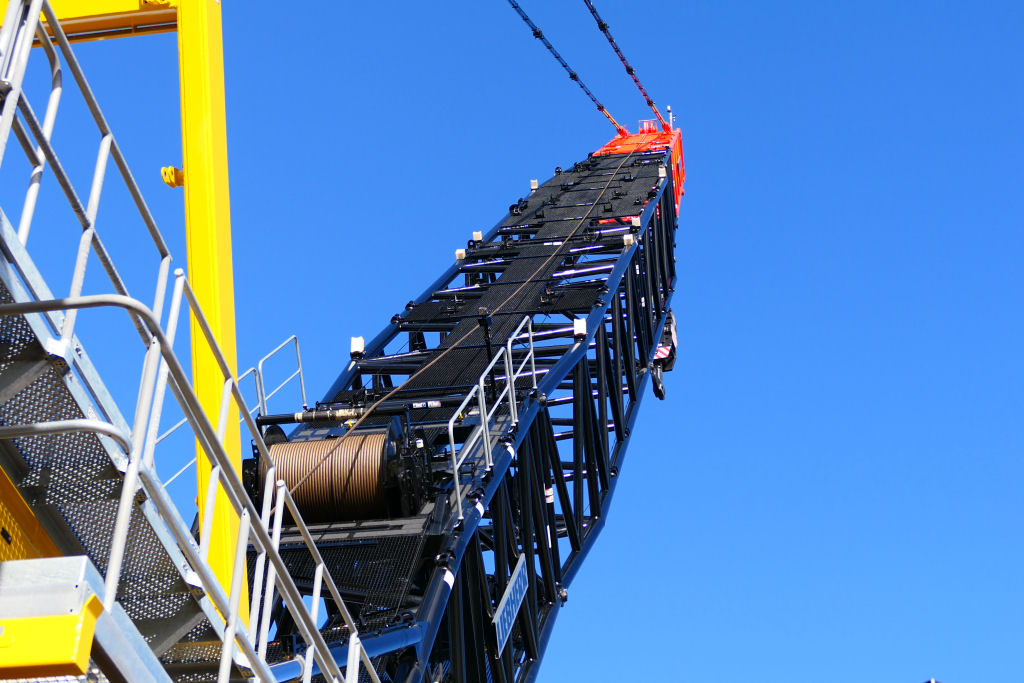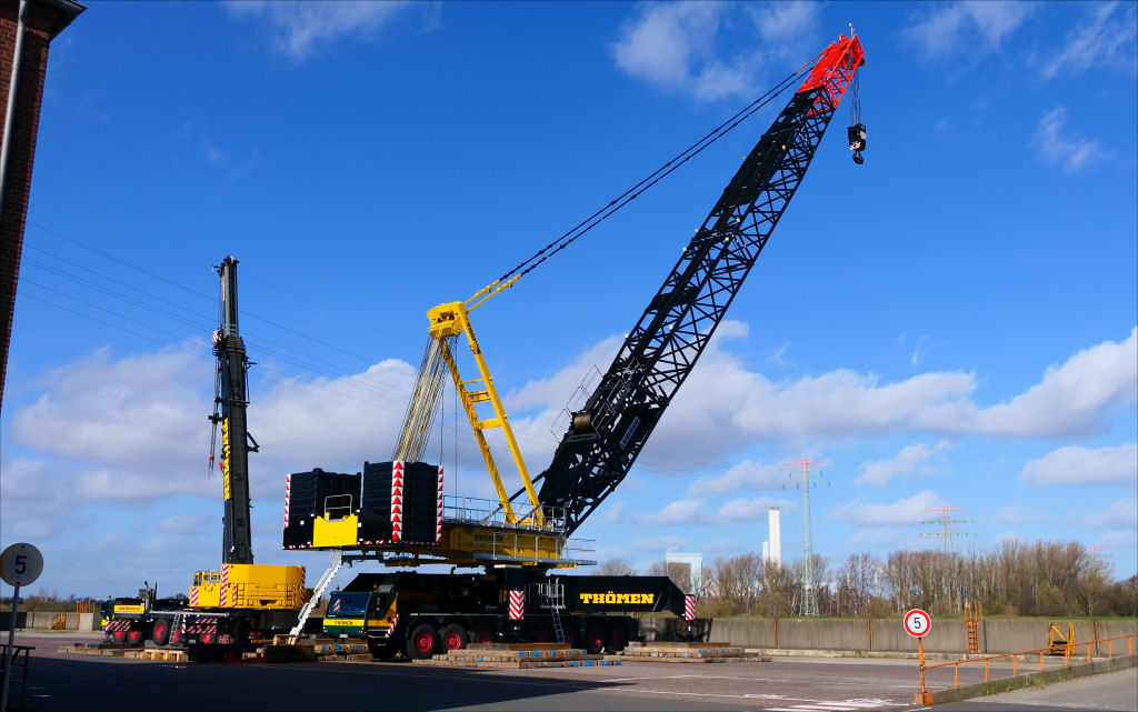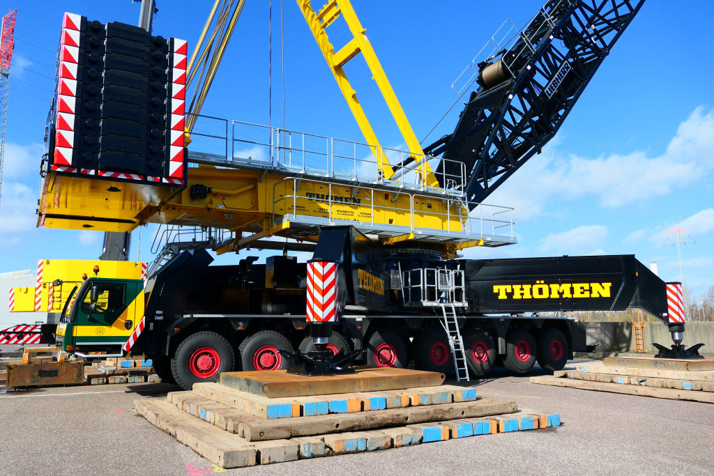 Der Kran wurde mit 56 m SL Ausleger, Oberwagenverlängerung und 245 t Ballast aufgebaut.