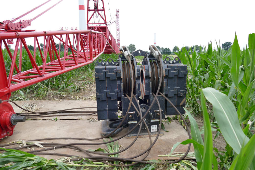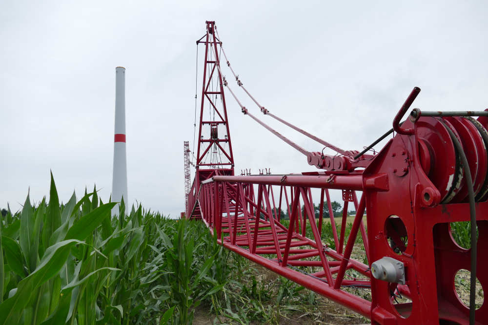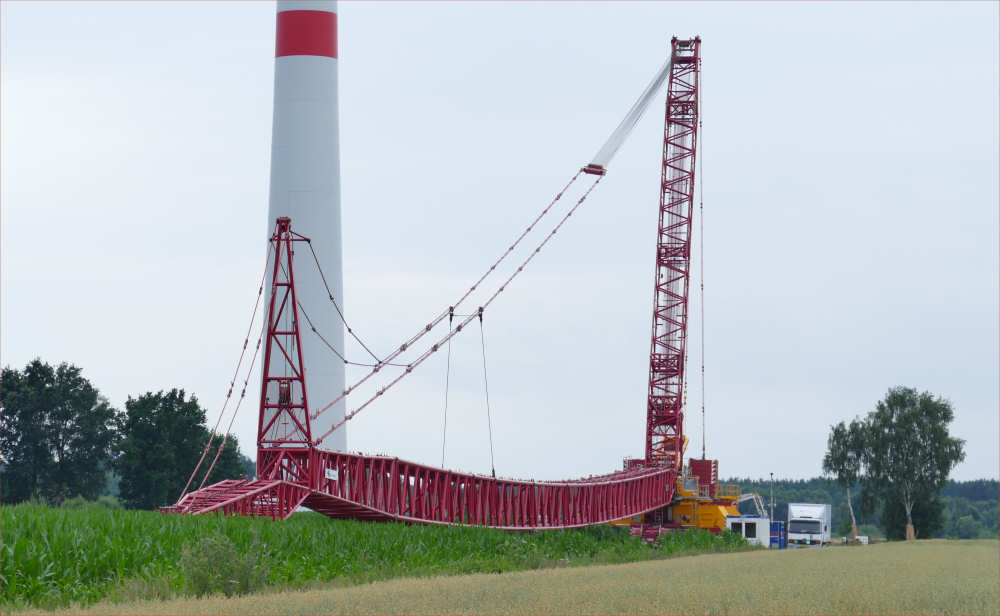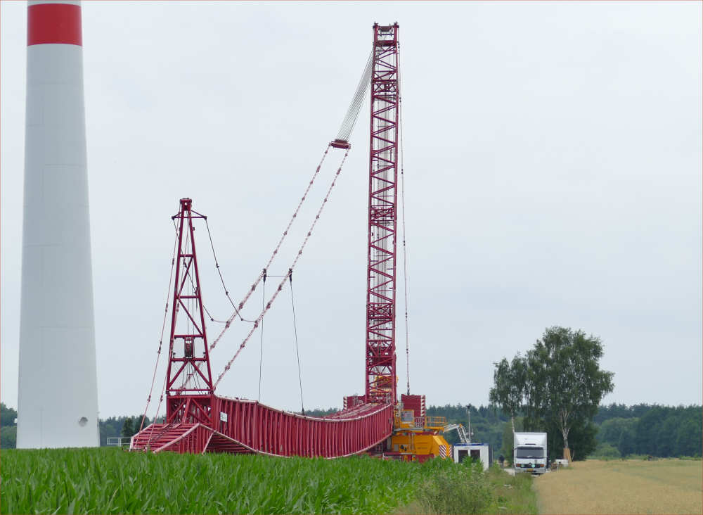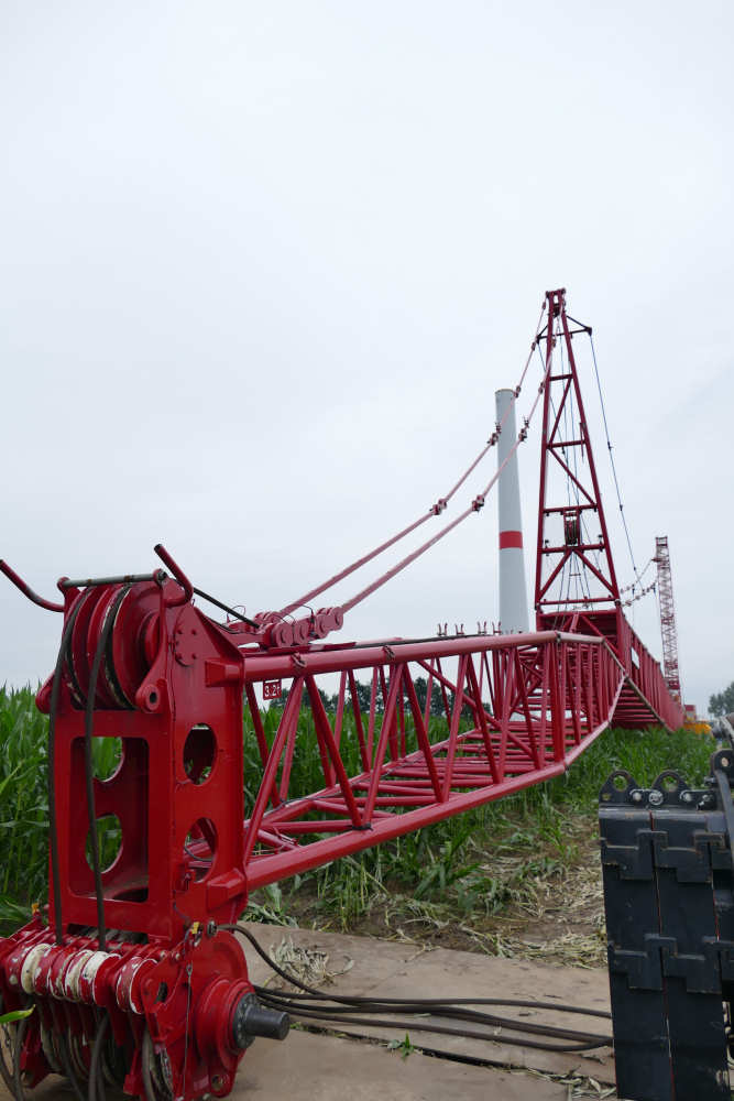 Vier sehr steif ausgeführte und großdimensionierte Klappholme bilden eine Sternabstützung mit 16 x 16 m Abstützbasis;