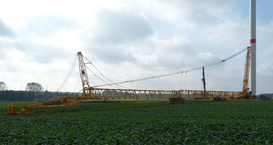 Mit maßgeschneiderten Auslegersystemen ist der LR 1600/2 ideal für die Montage von Windkraftanlagen.