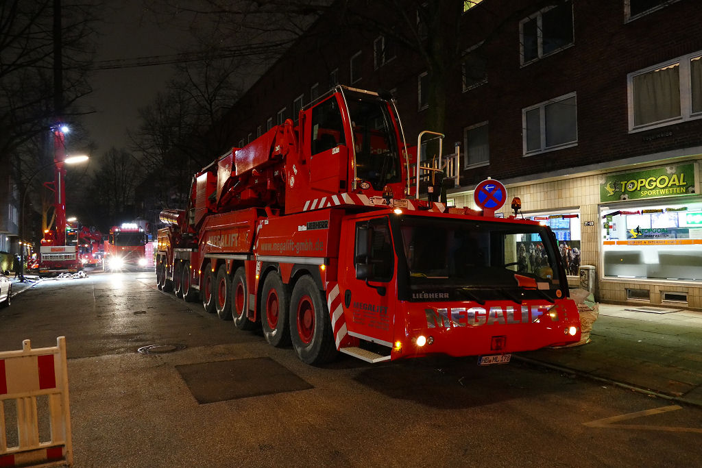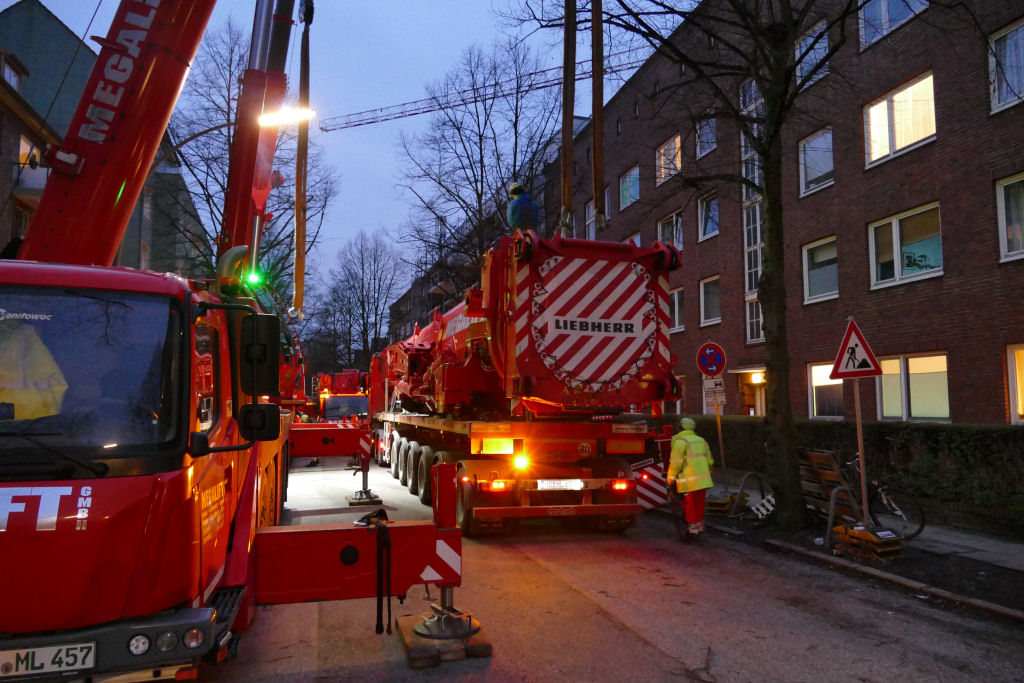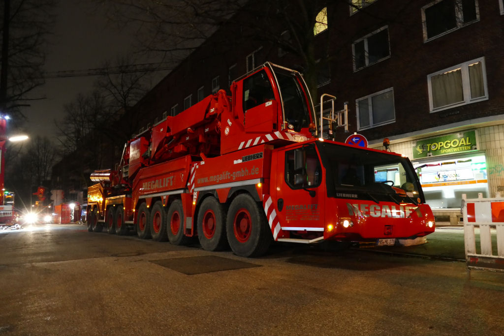 Liebherr LTM 11200-9.1 bei einem Einsatz in HH Barmbek