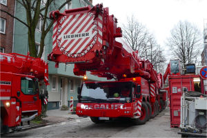 Liebherr LTM 11200-9.1 bei einem Einsatz in HH Barmbek